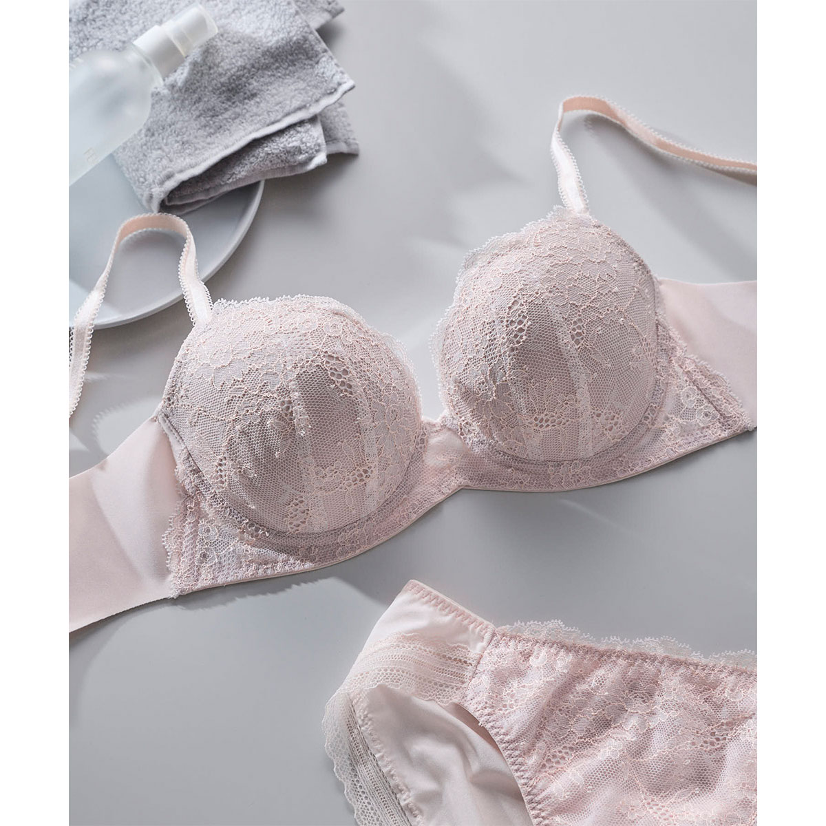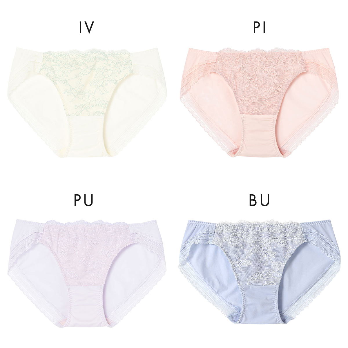 繊細な柄のレースが軽やかなイメージを表現。ヒップ部分には伸びのよい生地を使用しているので、なめらかな肌ざわり。