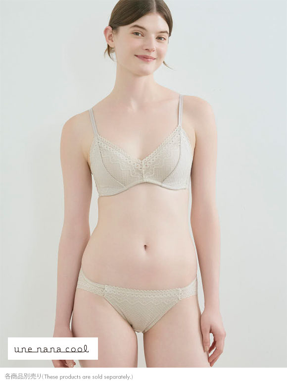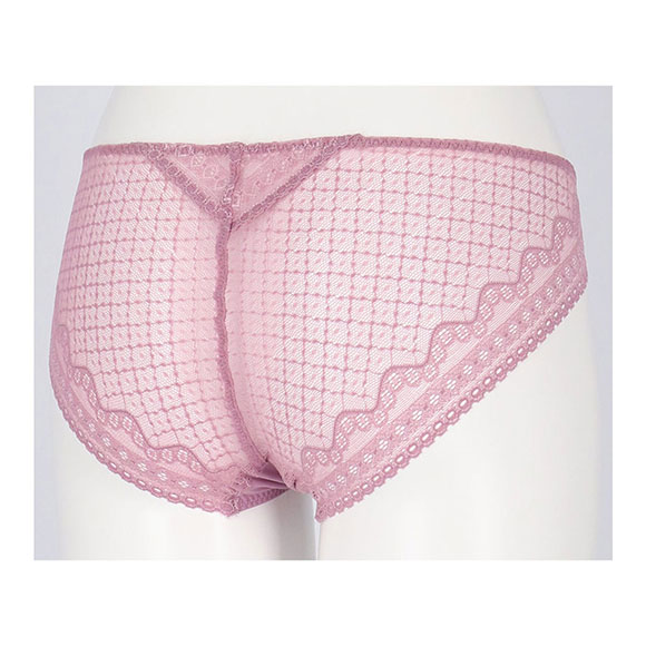 表のレースと裏の素材のカラーを変えることにより、カラーの楽しさや奥行きを演出。総レース仕様でアウターにひびきにくい。