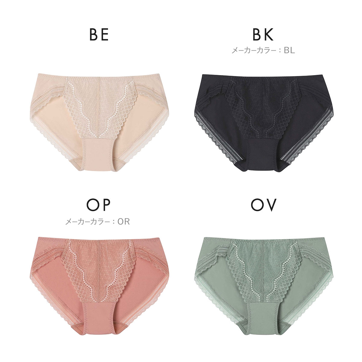 カラーBE-ベージュ、BK-ブラック、OP-オレンジピンク、OV-オリーブ