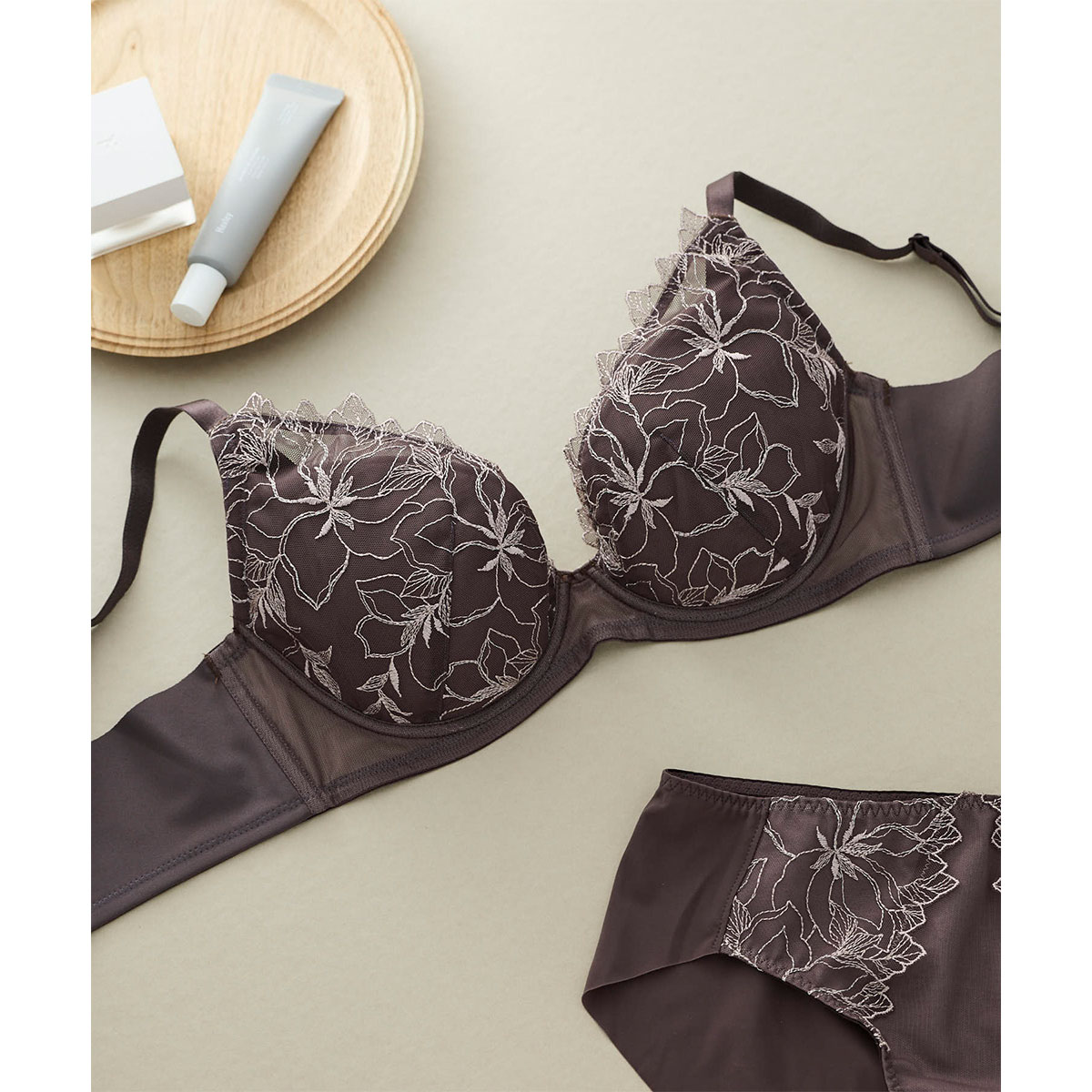 ・洗練されたミニマルなレースの小さく見せるブラのセットショーツ。
