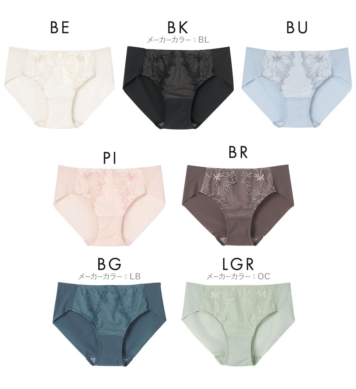 | カラー | BE-ベージュ、BK-ブラック、BU-ブルー、PI-ピンク、BR-ブラウン、BG-ブルーグリーン、LGR-薄グリーン |