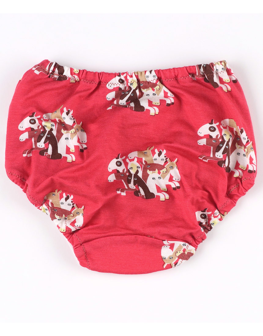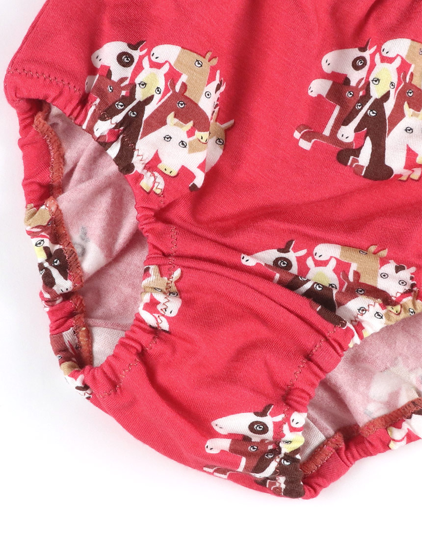 馬が9頭、まるっと集まっているプリント柄で縁起をかつぎます。
