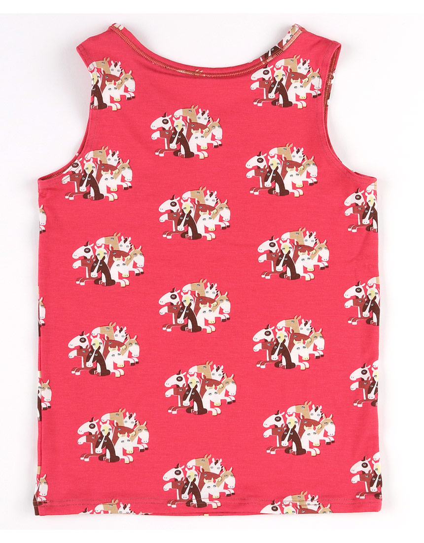 馬が9頭、まるっと集まっているプリント柄で縁起をかつぎます。