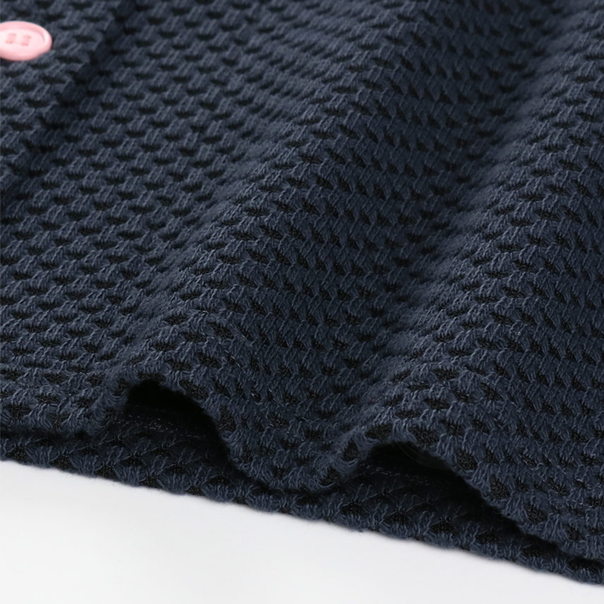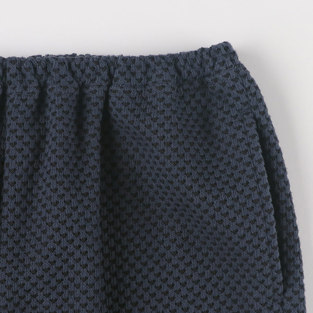 ぽこぽことした肉厚な生地で襟は丸襟でかわいらしい印象。