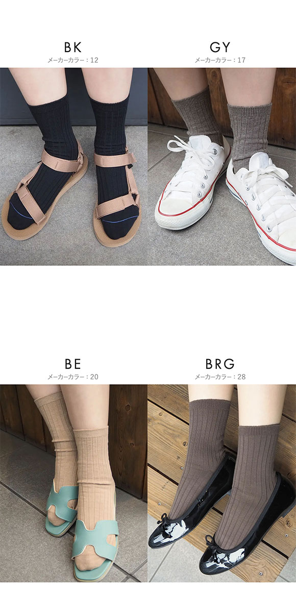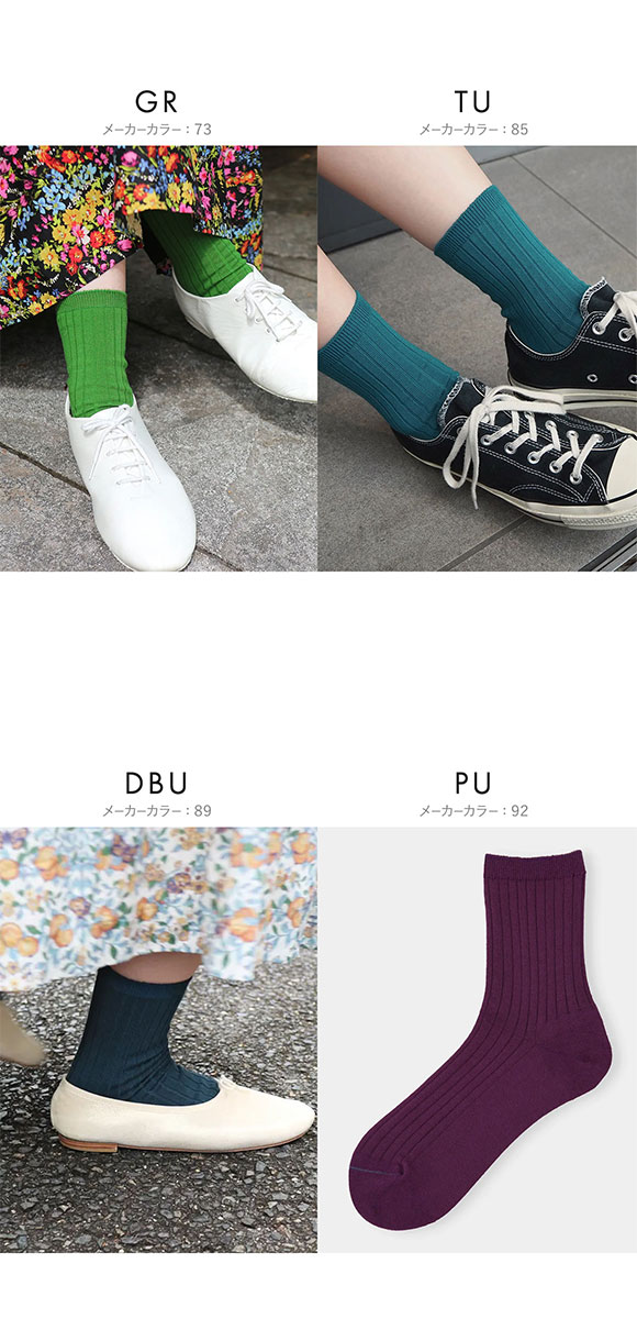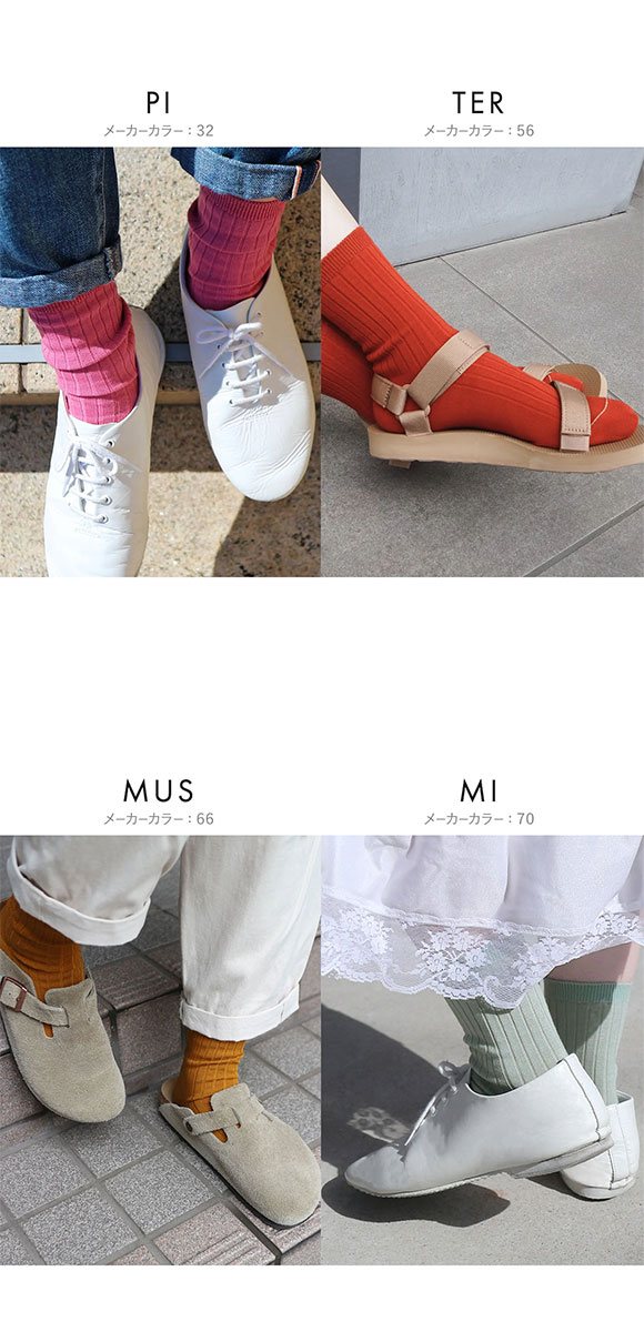 綺麗めすぎず、カジュアルすぎないちょうどいい6×2のリブのバランスと、豊富なカラー。ローファーやパンプス、スニーカーなど、程よく薄手なのでいろんな靴と合わせやすい◎