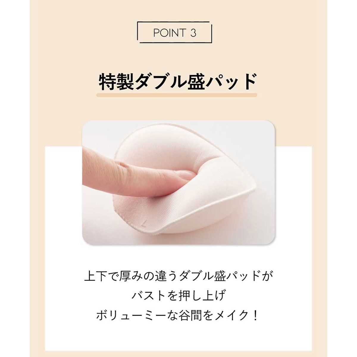 ・ダブル盛パッド+土台しっかり不織布でワイヤーを感じにくく、押し上げたバストをキープし、しっかり盛り胸をキープします。