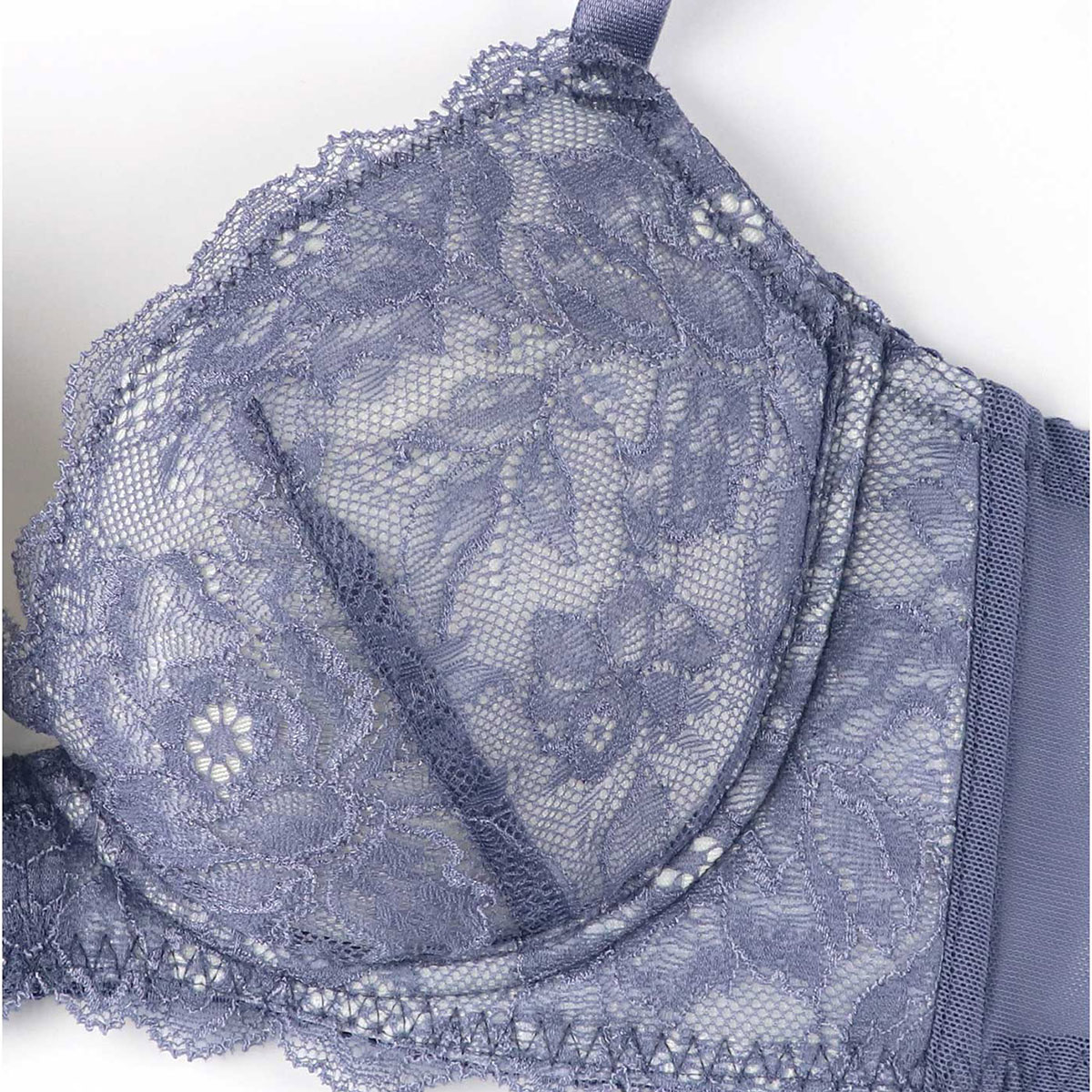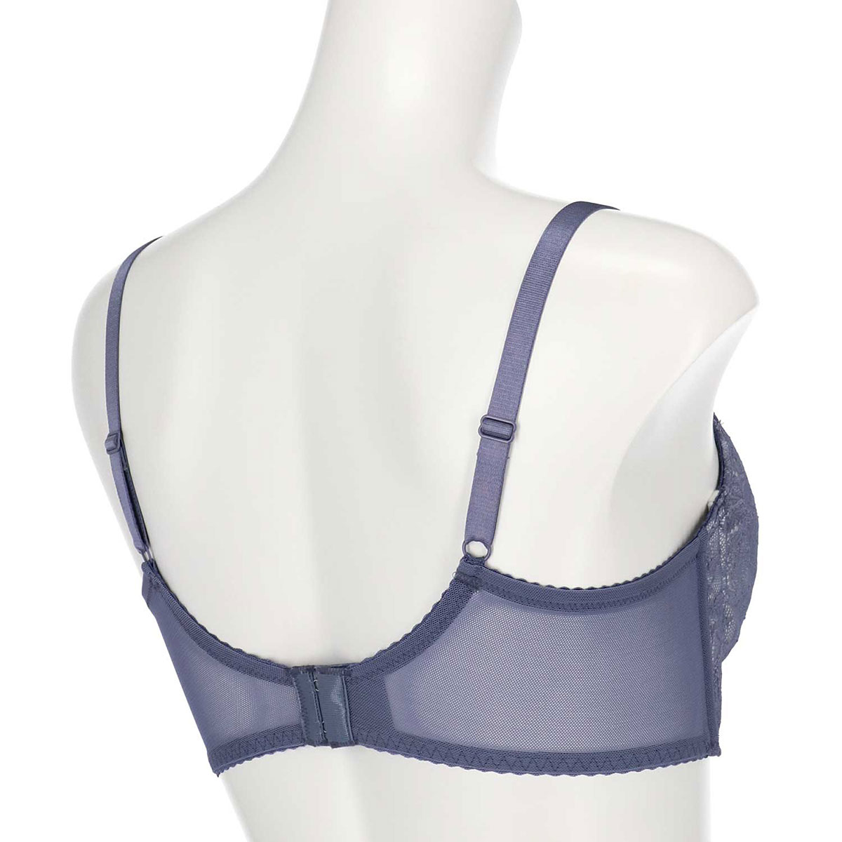ストレッチラッセルレースをカップから土台まであしらったブラジャー。レースの華やかさもありながら、シンプルでひびきにくいカップデザインが魅力です。