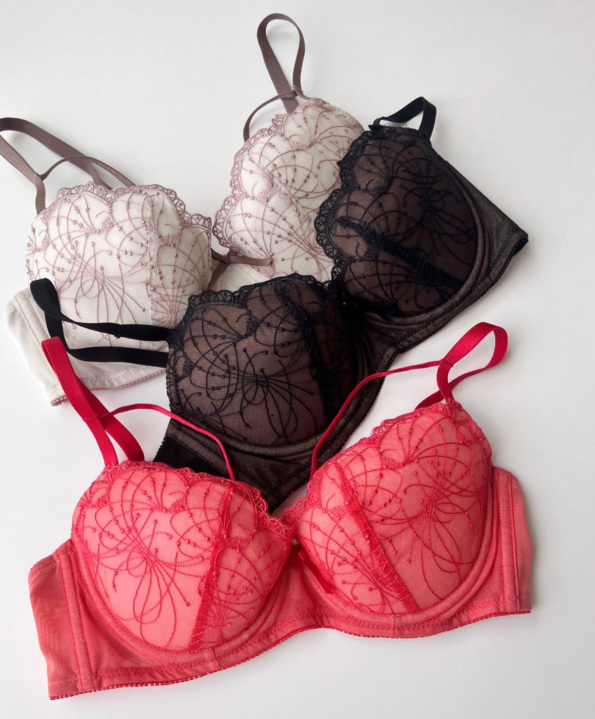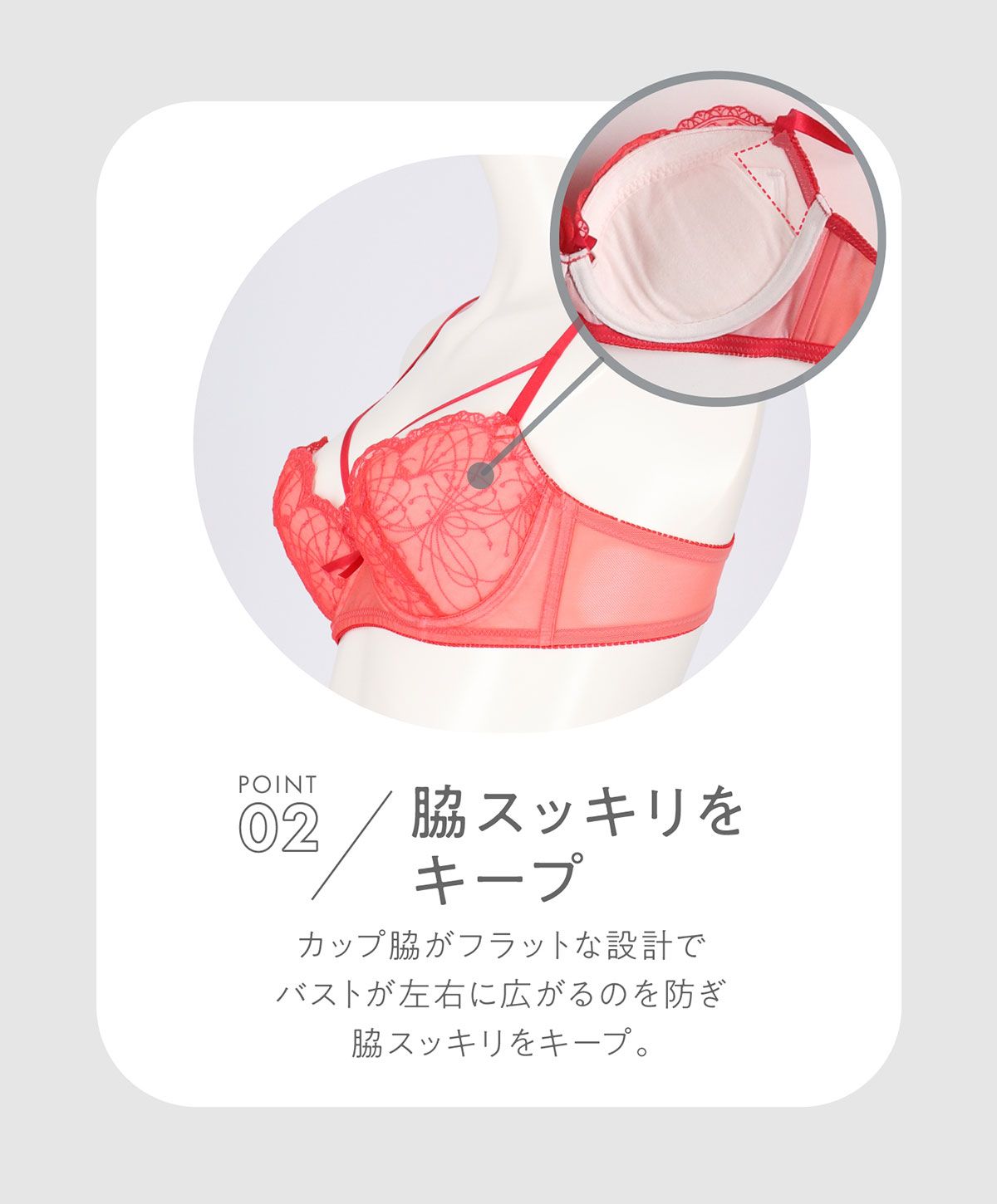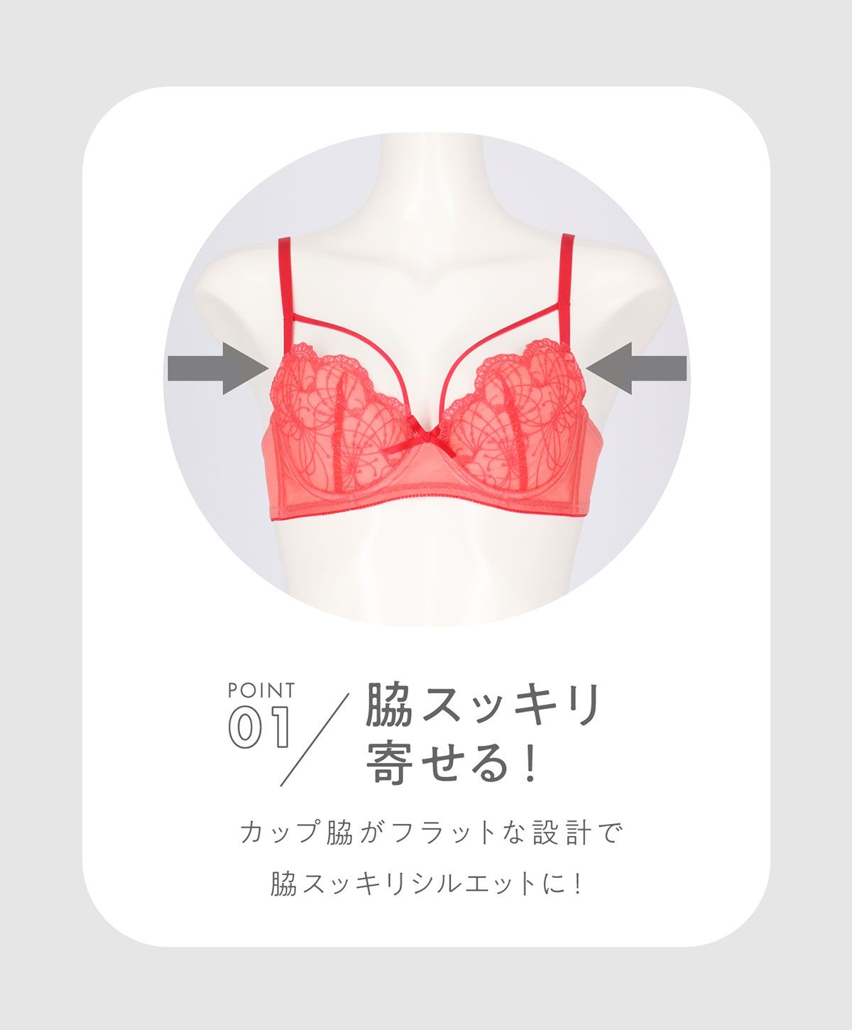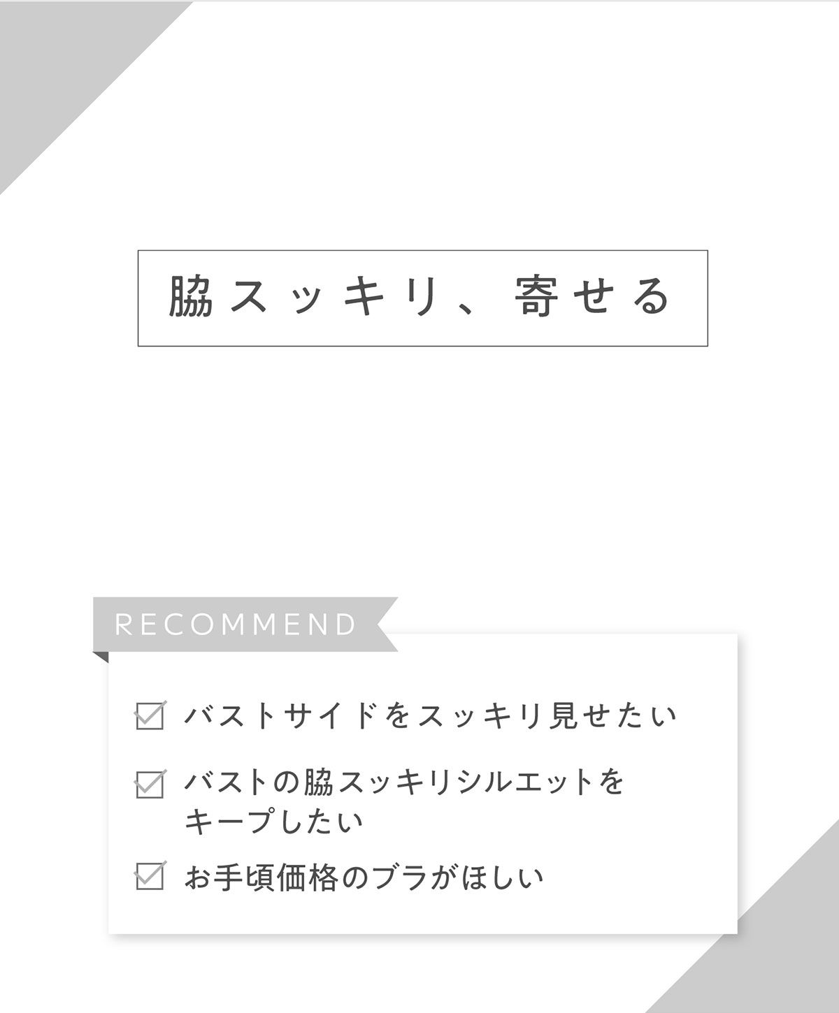 カップ脇がフラットな設計で、脇スッキリ【寄せる】機能のブラジャー。