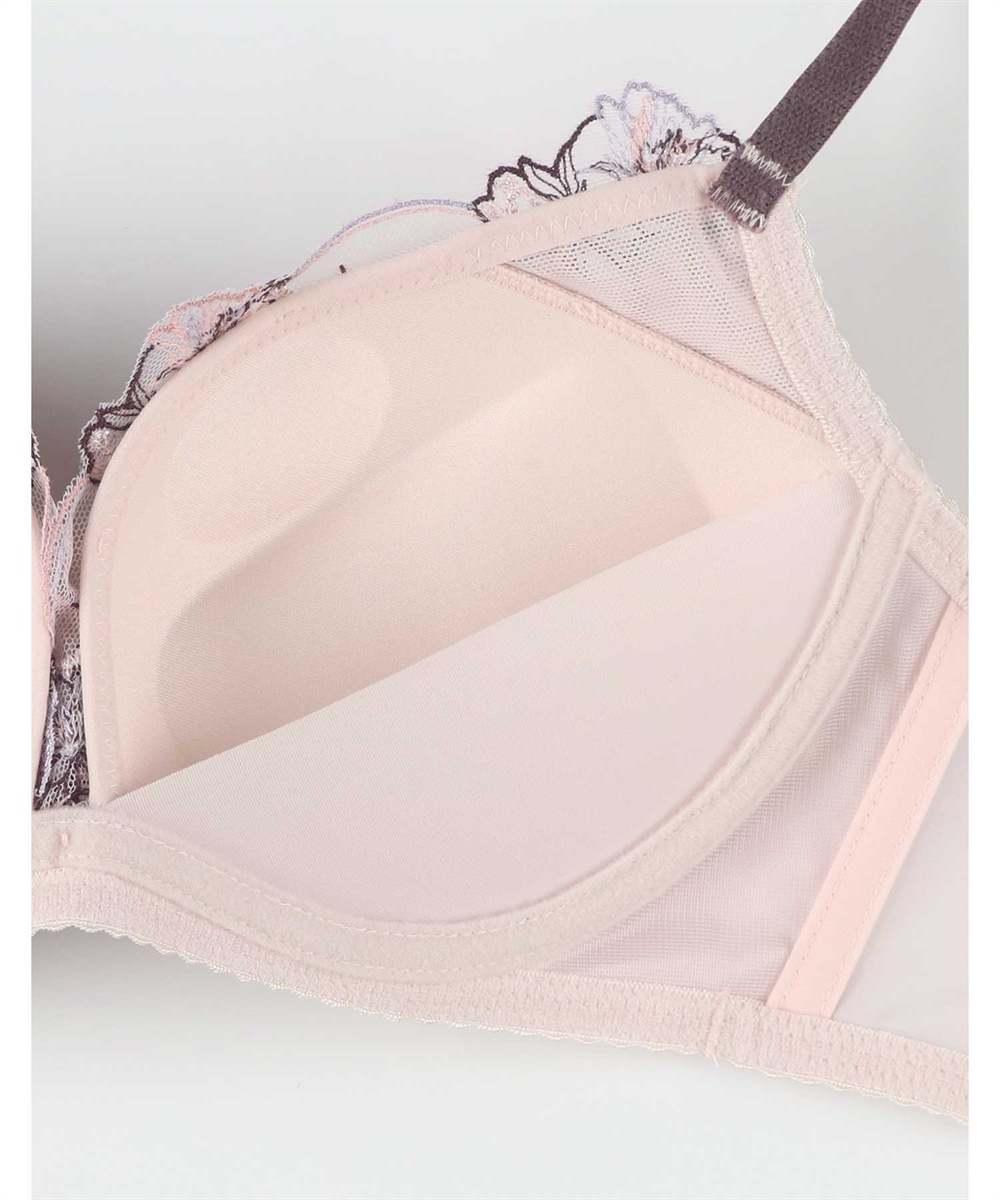 カップ下部の厚みがバストを下から押し上げボリュームアップ。カップ上部の厚みがカップの浮きを防いでバストにフィット。