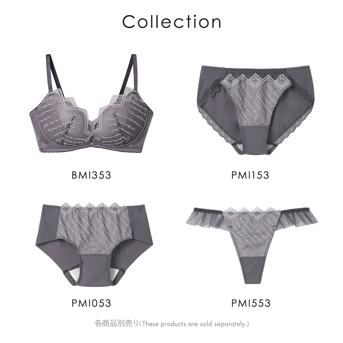 カラーごとに違うレースデザインでときめく、プレイフルなグループ。すっきりと仕上げたカップデザインで普段使いにぴったり。前中心にはラインストーンのチャーム付きです。