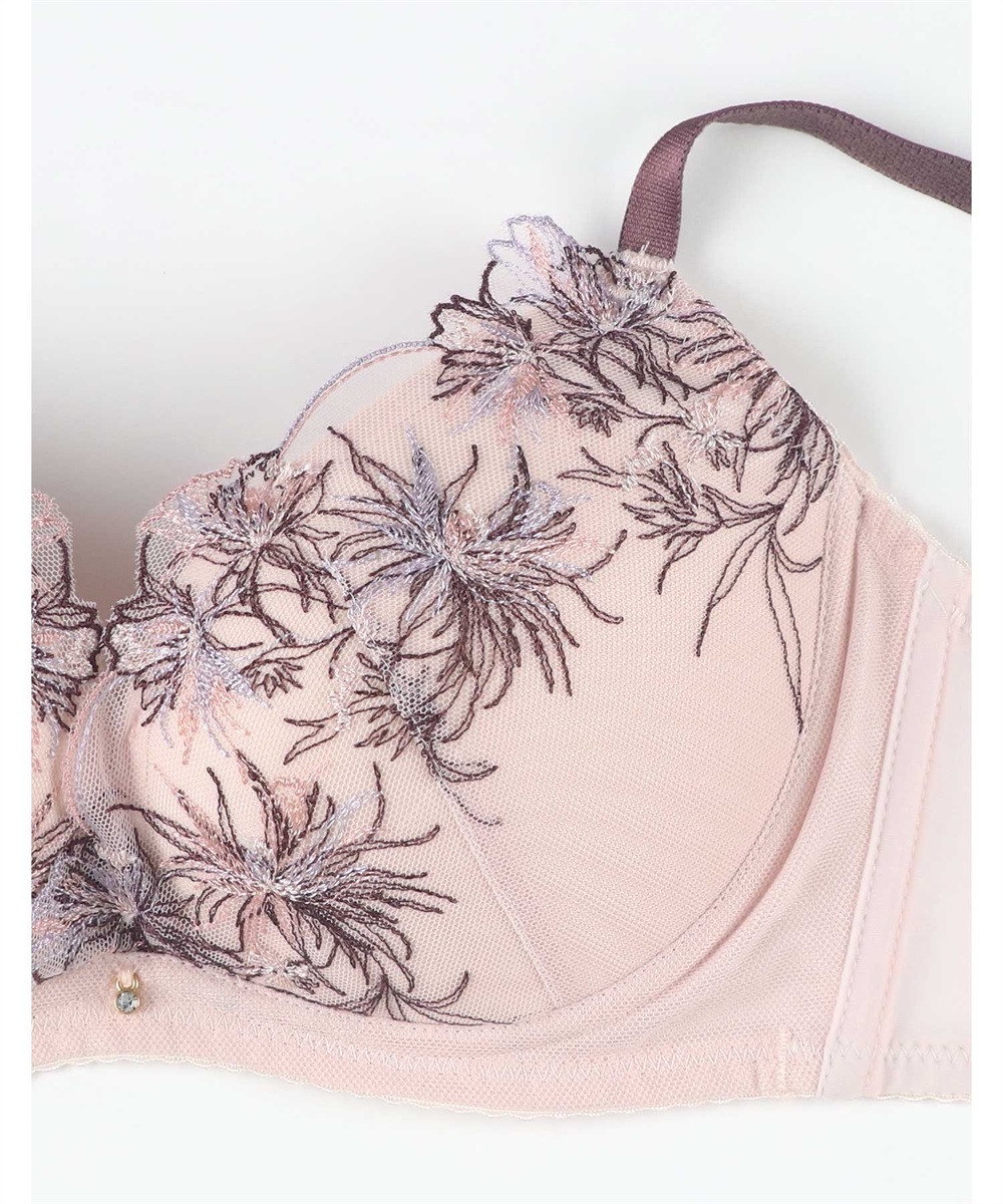 カップ脇の伸縮性のあるパワーネットがバストを引き上げ、カップがバストにフィット。