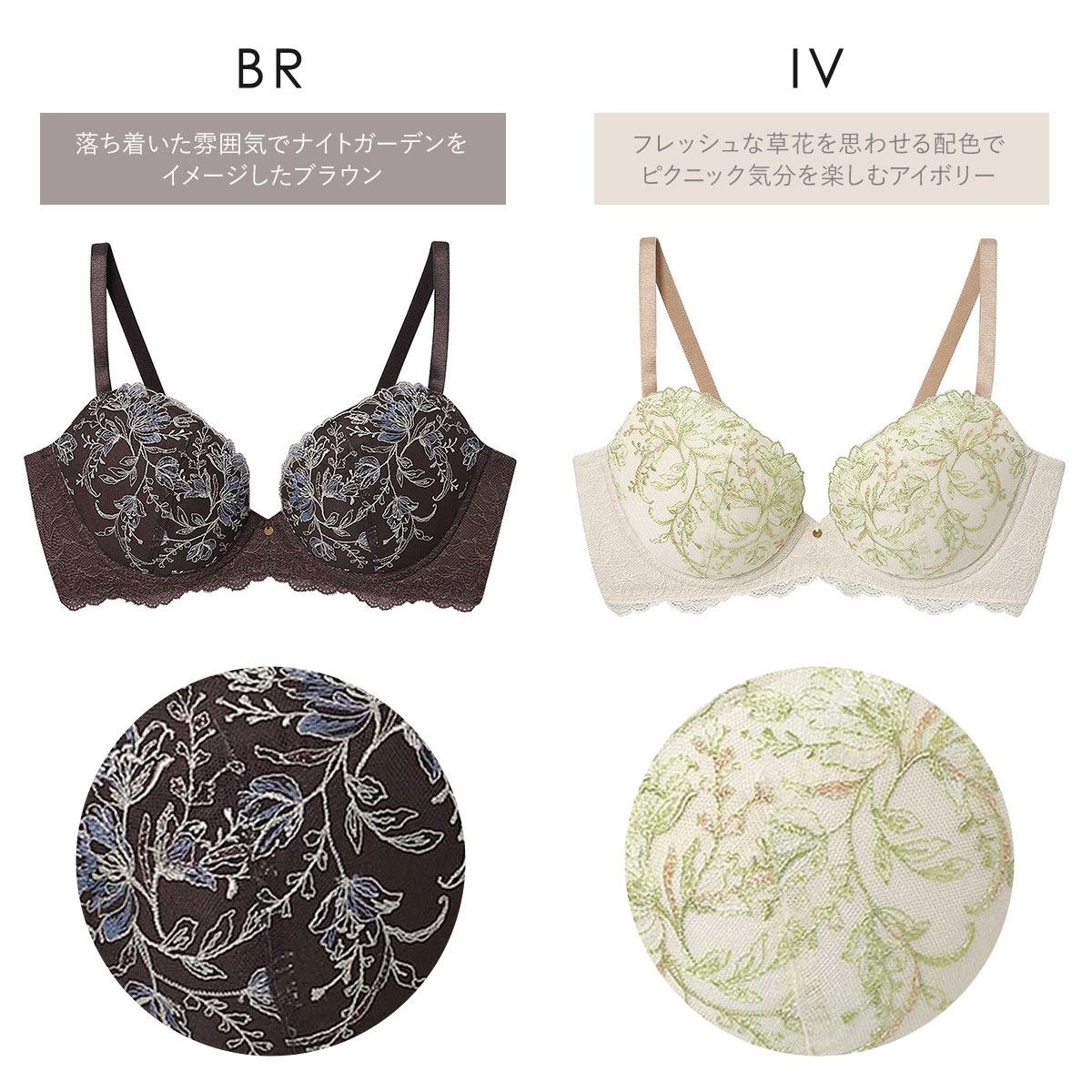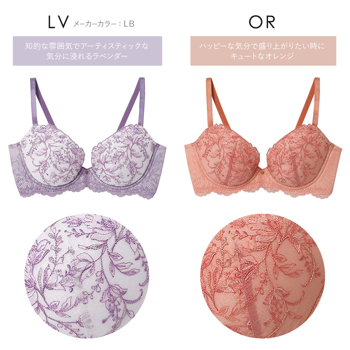 | 仕 様 | ・ホックの数:2段2列 ・3/4カップ ・パッド取外し:可能(D80はパッドなし、パッドポケットなし) ・肩紐取外し:不可 ・ワイヤー入り ・サイドボーン:なし(D80はあり) |