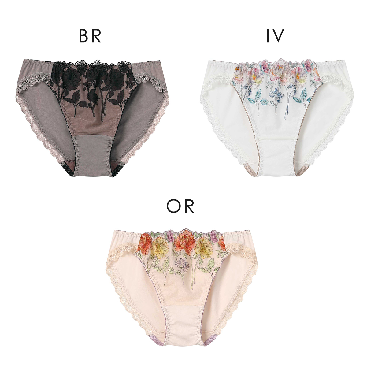 後ろ裾はストレッチレースをほどこし、アウターにひびきにくいです。多色なプリントで華やかさをプラス、色ごとに変わる雰囲気をお楽しみください。
