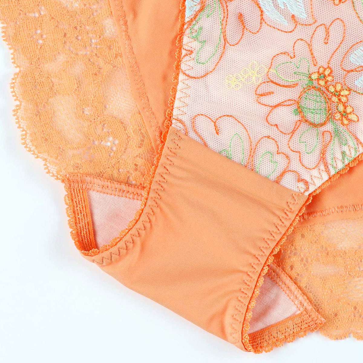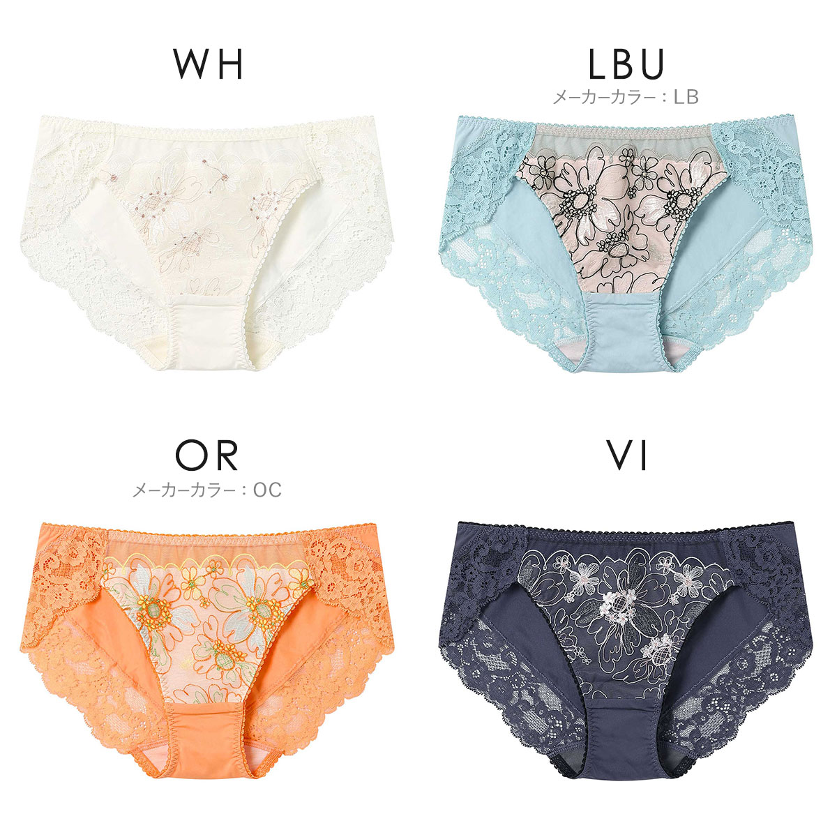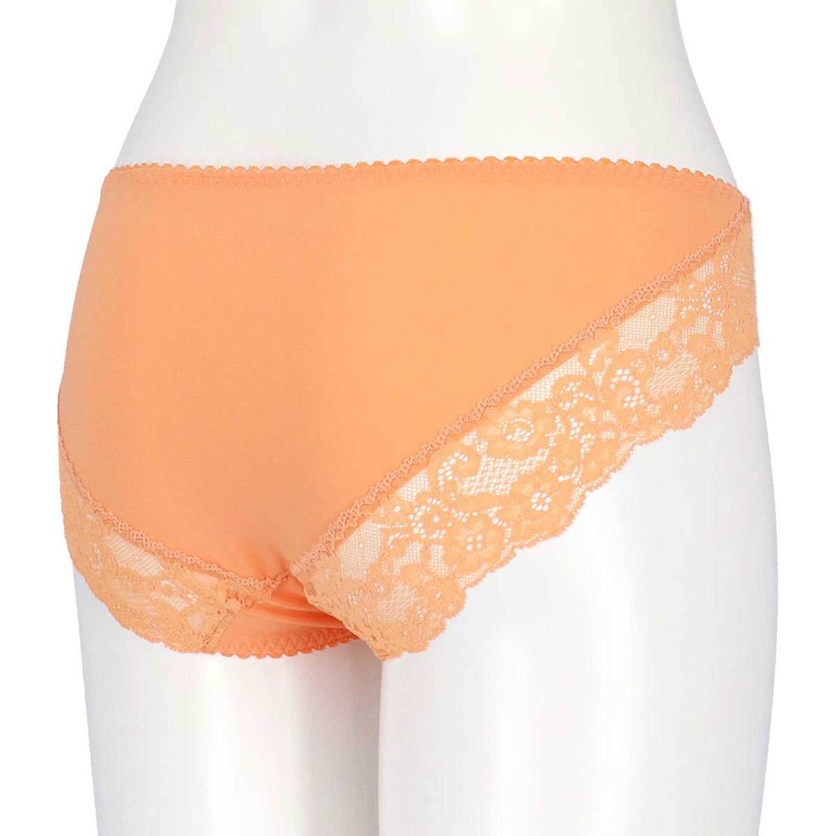 フロントに華やかなレースをあしらったショーツ。裏打ち付きで透けにくく、やさしい肌あたりです。