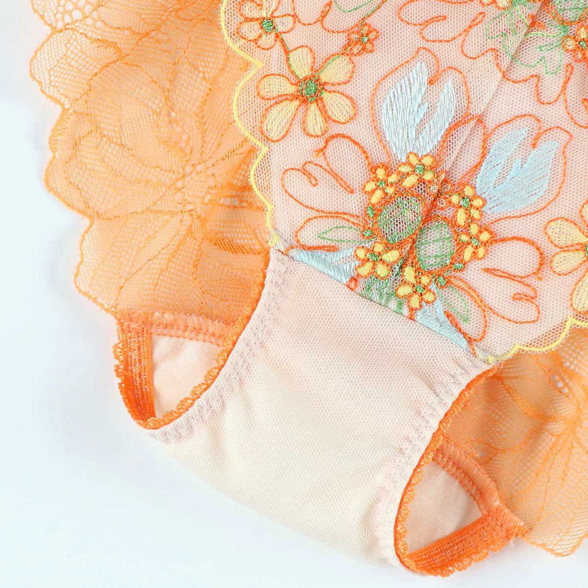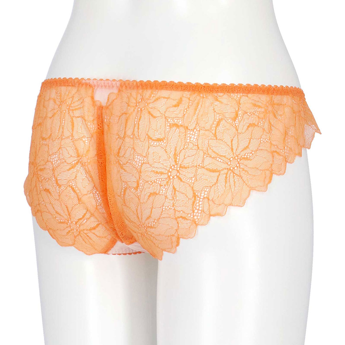 フロントには立体感のあるエンブロイダリーレースをあしらった総レースデザインのショーツ。