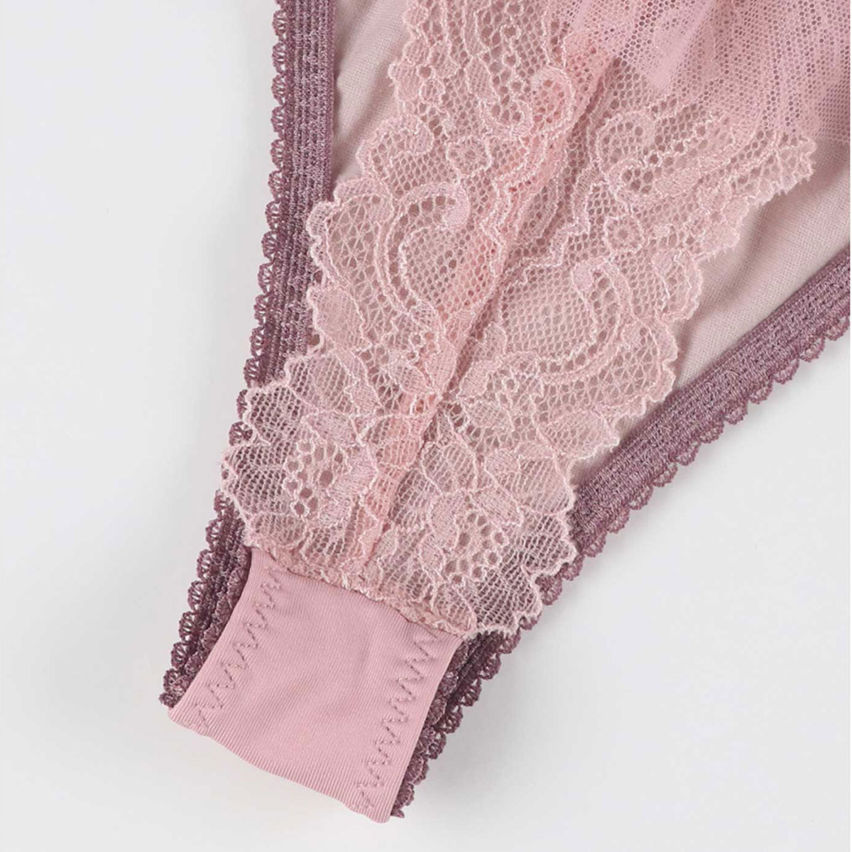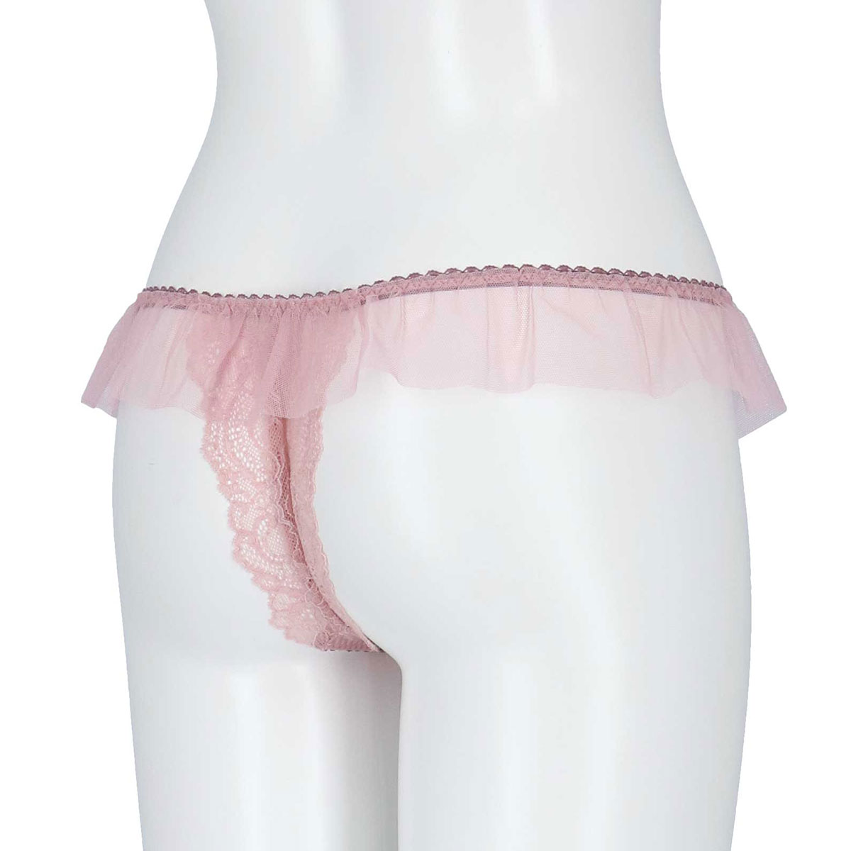 バックは、くいこみにくく、エレガントなレース仕上げ。前中心にチャーム付きです。