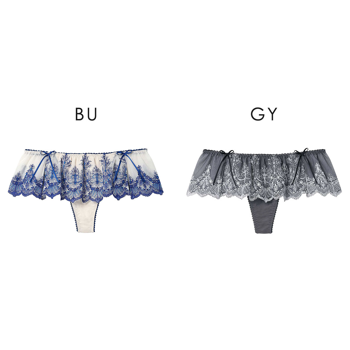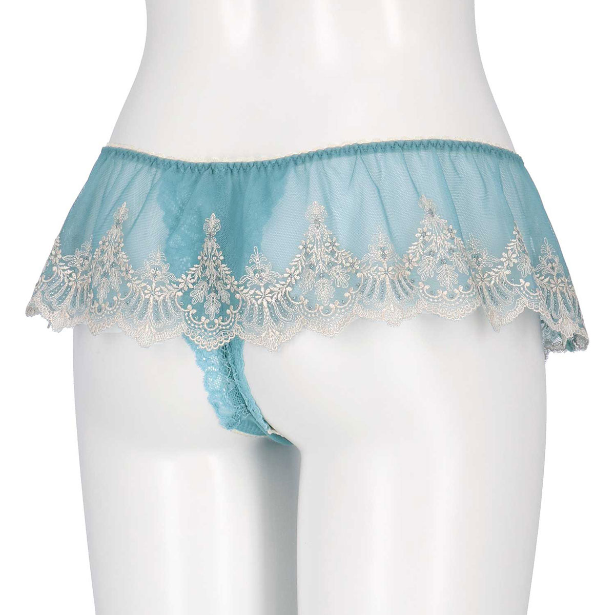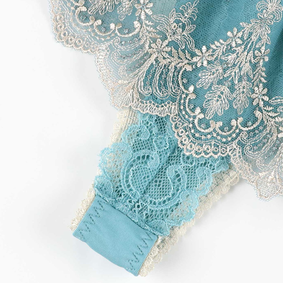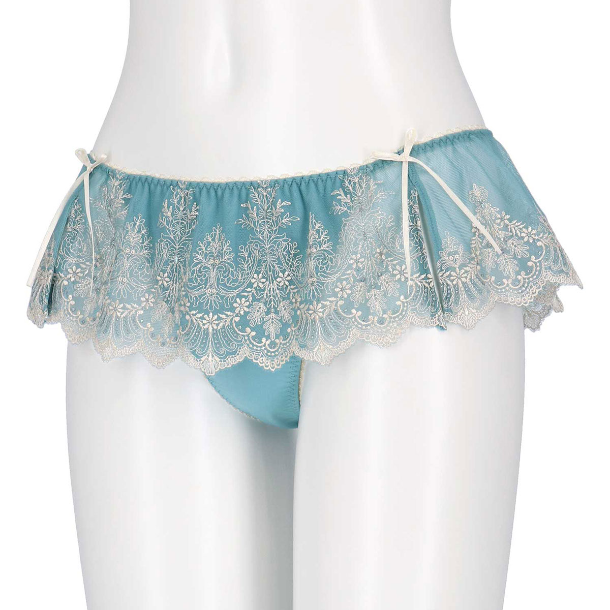 スカートのようにエンブロイダリーレースをウエストにあしらった、贅沢な印象のソング。