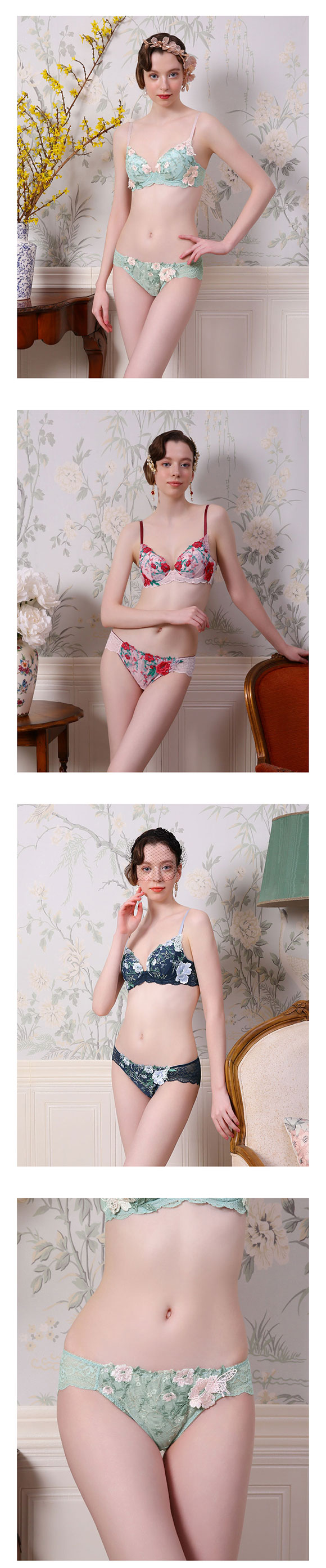 ブラ、ショーツはもちろんガーターベルトやスリップもつけたくなるデザインだと思います。
