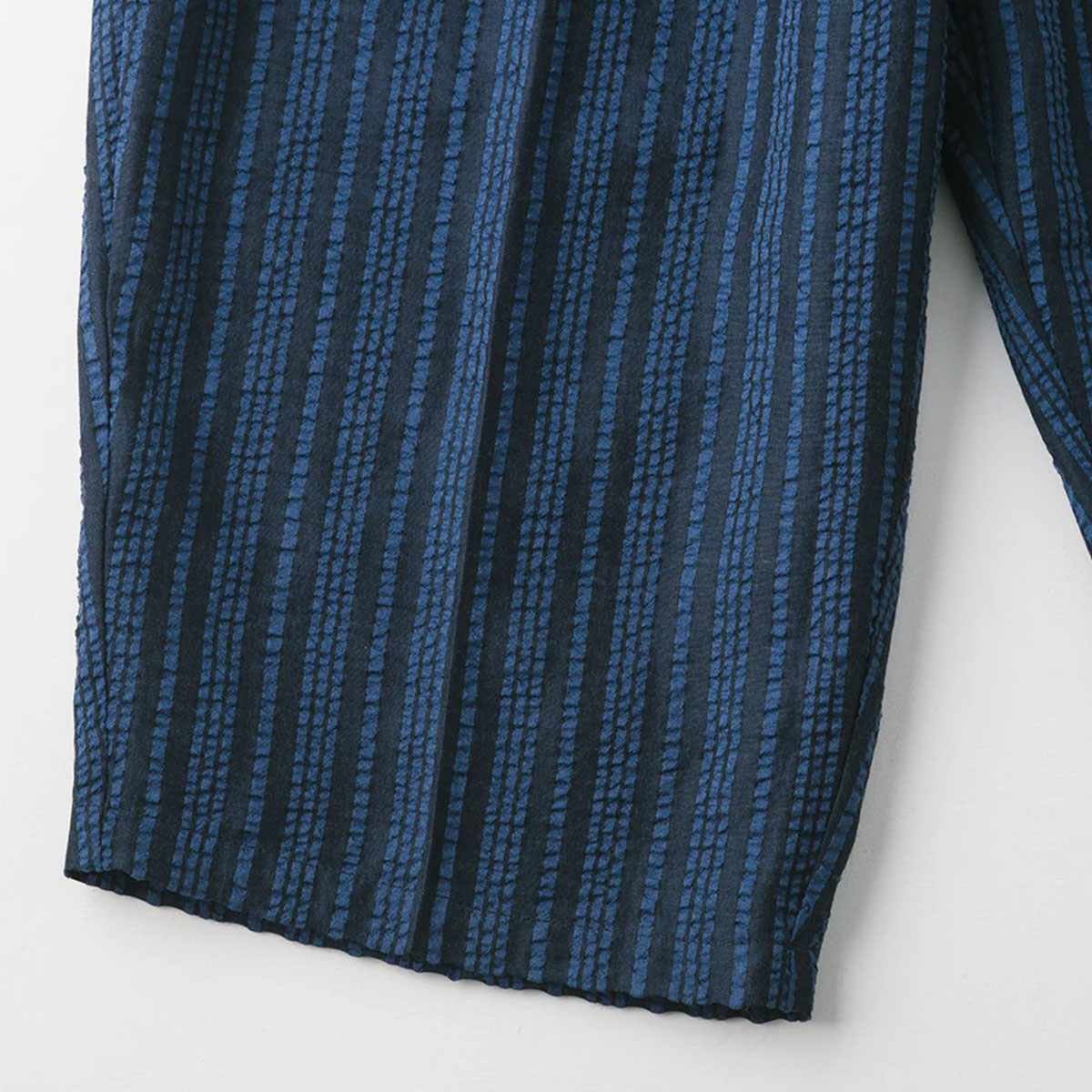 サッカー素材は表面に凹凸感のある布帛生地で肌に触れる面積が少ない為、風通しが良く、汗ばむ時期に適しています。しわになりにくく乾きやすい「イージーケア性」でお手入れも簡単です♪