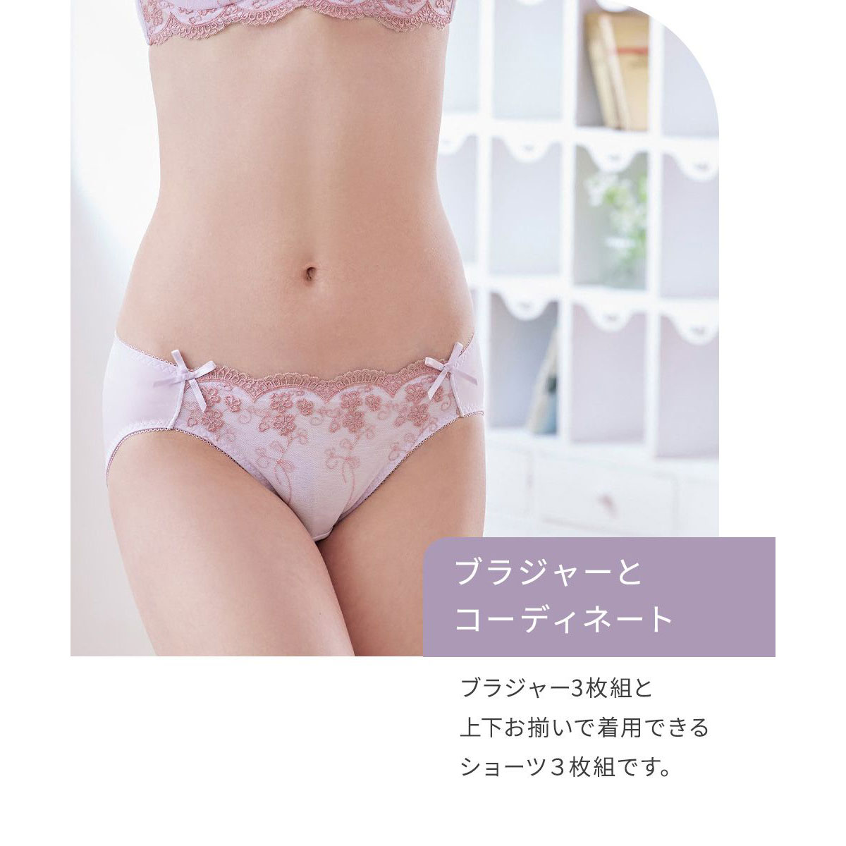 【ニッセンとトリンプ共同企画】フラワーレース コーディネートショーツ 3枚組 LL 3L