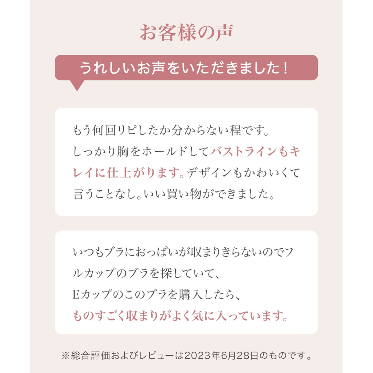 上向きバストを叶えるカップは、脇肉をしっかり寄せて支えるサイドボーン付き。安定感のある着用感で、ボリュームパッドがきれいなボリュームアップを実現します。肌に優しい綿混素材を使用し、ブラホック裏も起毛素材で優しい肌あたり。