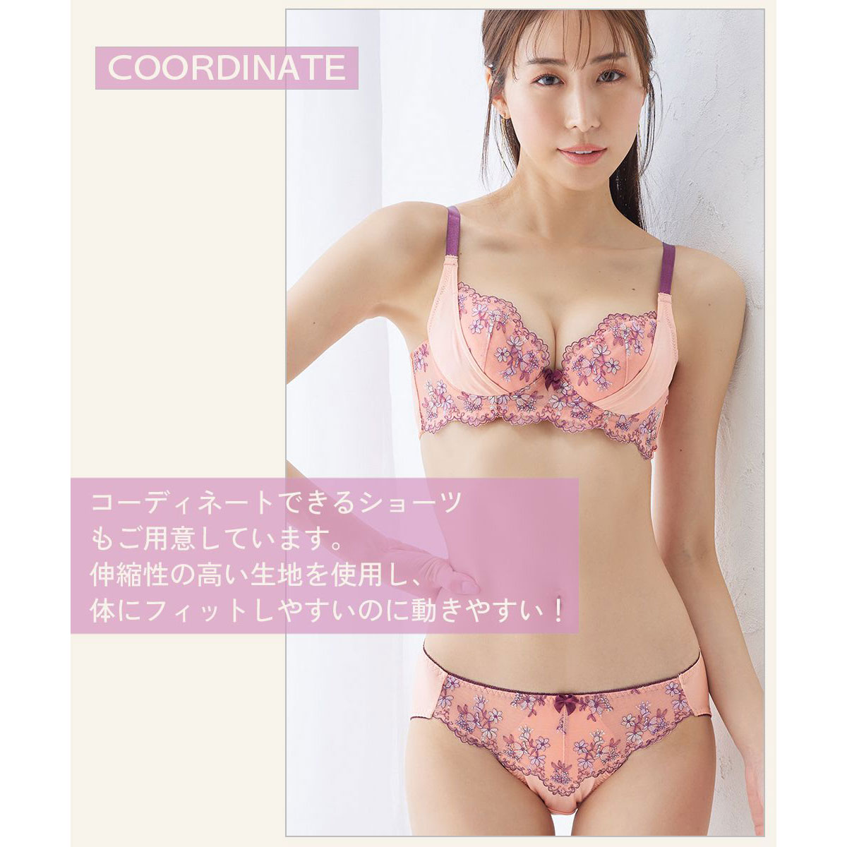 フロントのリフトアップパネルがデコルテをふっくらと見せ、安定感のあるU字バックでストラップのズレも防止。胸元の開いたアウターもきれいに着こなせます。コーディネートできるショーツ(C47CJC224E02)もご用意しています。