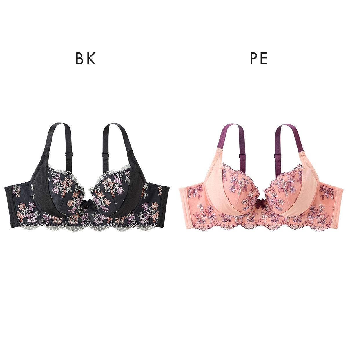 ニッセン いでよ!谷間 ソフトタイプブラジャー 小花 nissen(BK-ブラック-B70)