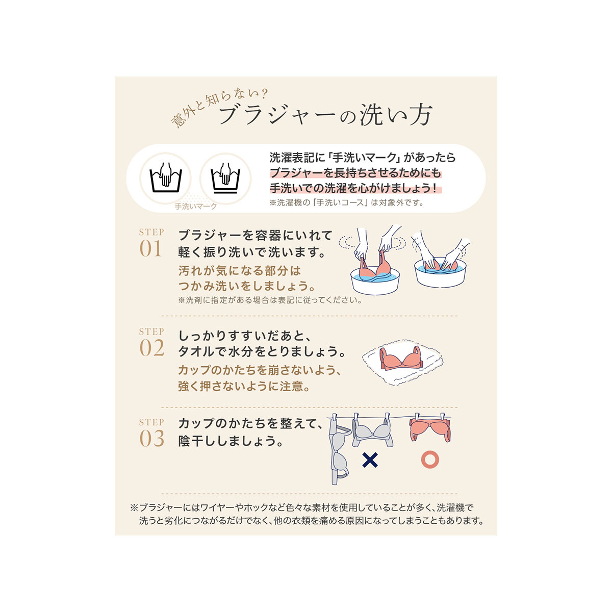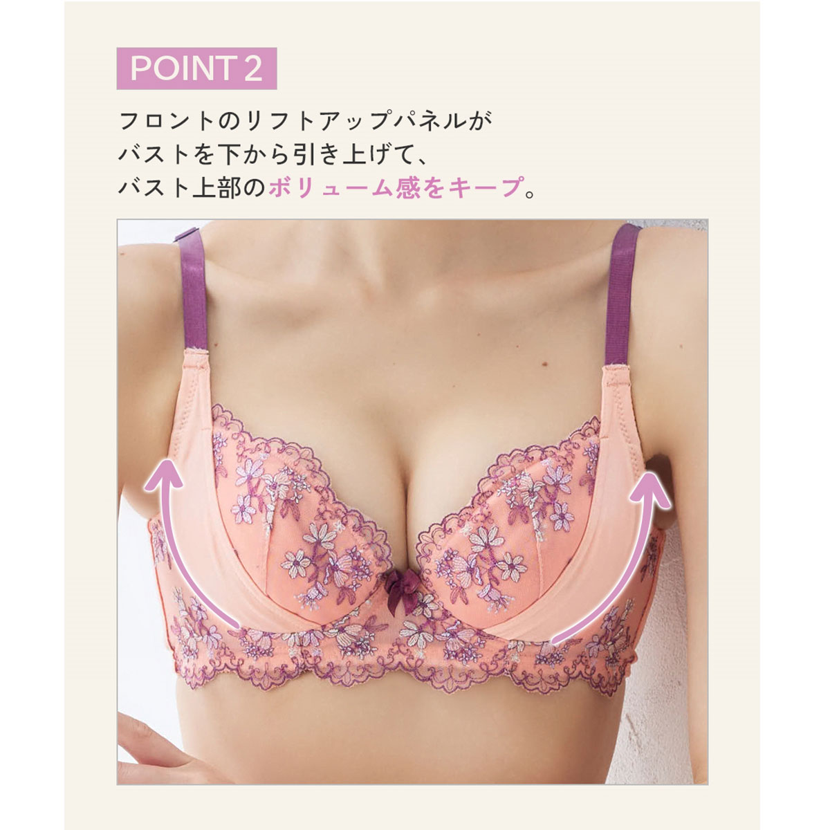 フロントのリフトアップパネルがデコルテをふっくらと見せ、安定感のあるU字バックでストラップのズレも防止。胸元の開いたアウターもきれいに着こなせます。コーディネートできるショーツ(C47CJC224E02)もご用意しています。
