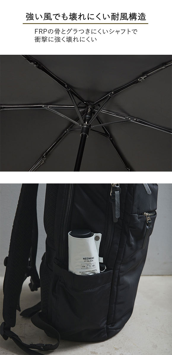 持ち運びに最適なコンパクトサイズで、強い風でも壊れにくい耐風構造。小さいのにたたみにくくない3段折構造で、性別問わず選びやすいユニセックスデザイン。