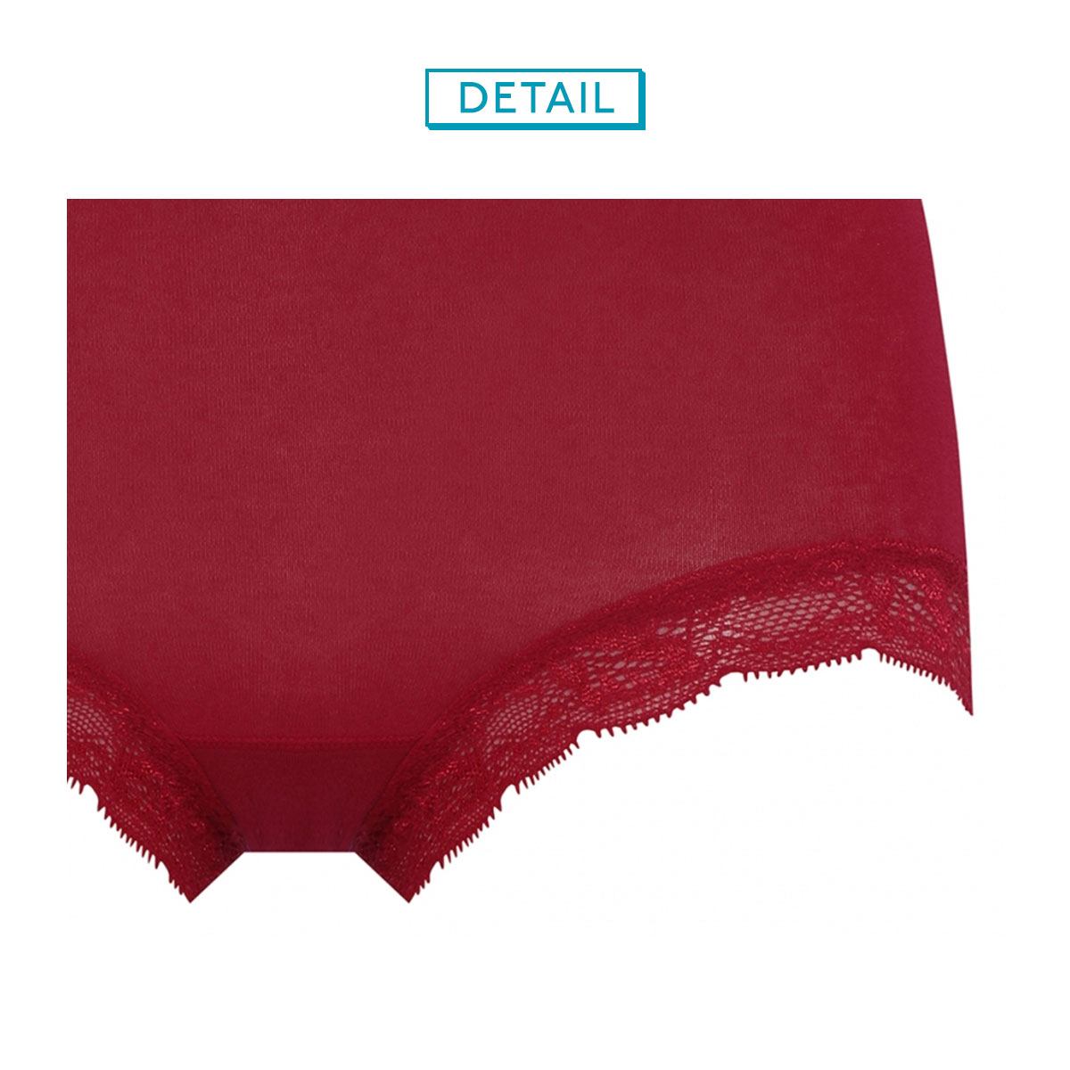 肌側パイル編みのレースはソフトな肌ざわり。ウエストはレースが直接肌に当たらない設計で、肌に優しい仕様です。モダンなリーフ柄のオリジナルレースがおしゃれ。