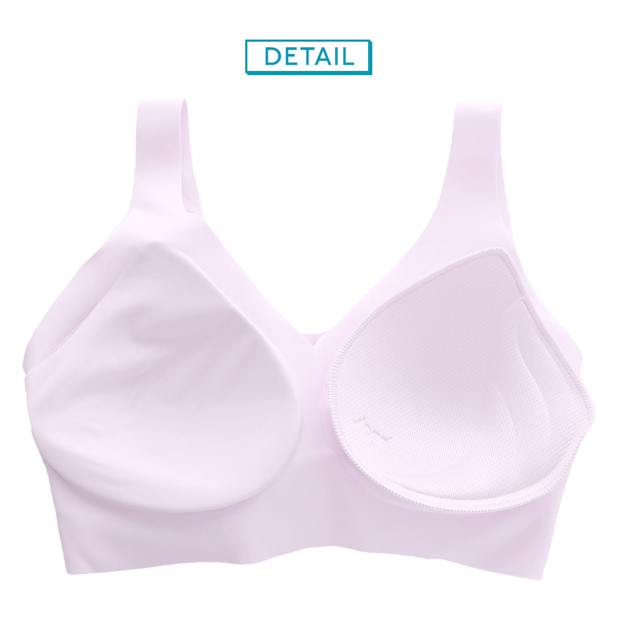 接着技術による完全無縫製(縫い目ゼロ)と切りっぱなしのフラットな仕様で、アウターへのひびきにくさも抜群。取り外し可能なパッドには、左右で異なるエンボス加工が施されており、お洗濯後の入れ直しもスムーズです。