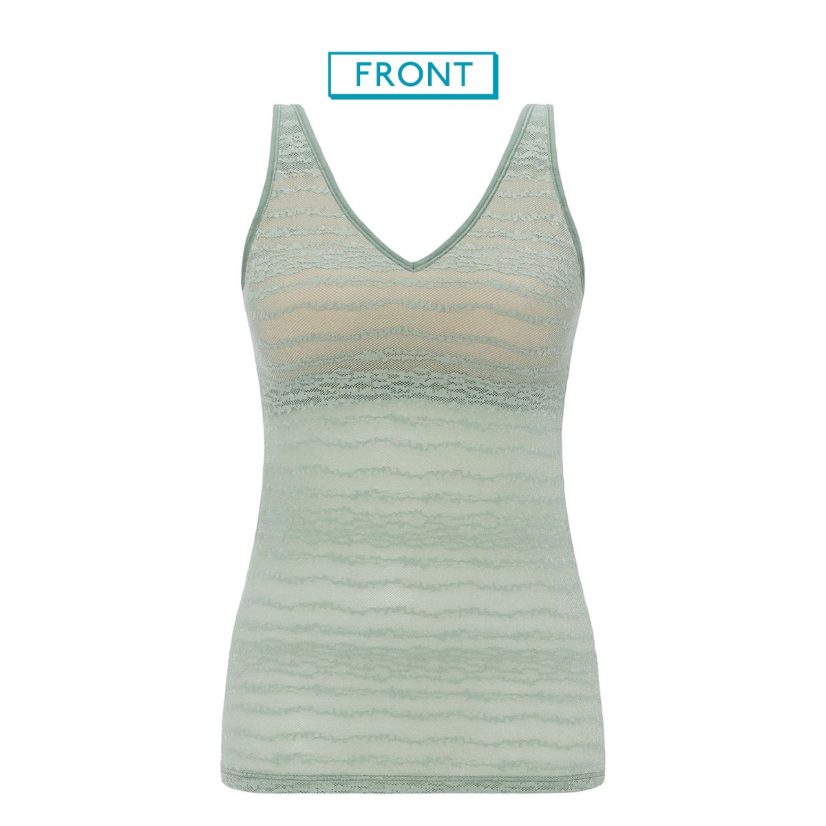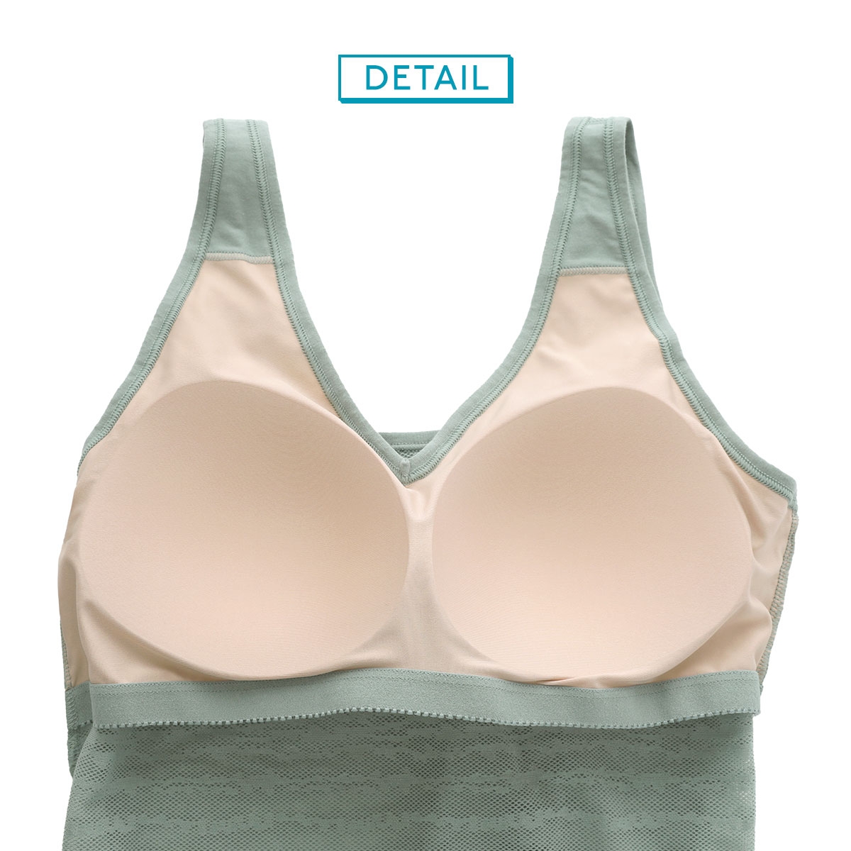 カップ付きのトップなので、重ね着の煩わしさがなく、1枚で簡単に洋服とコーディネートができます。
