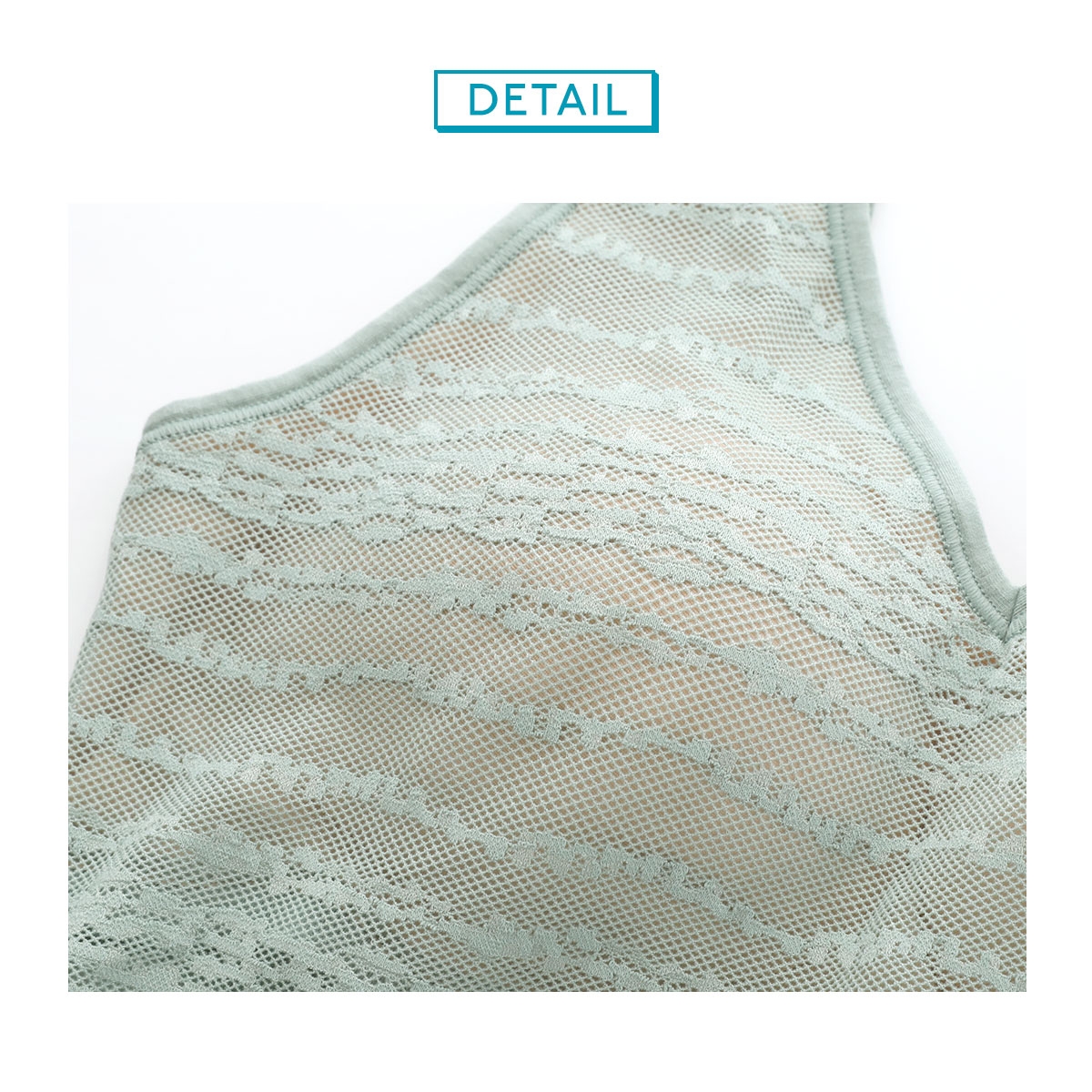 身生地は伸縮性がよいストレッチレース、幾何学模様のボーダーレースでやさしくからだにフィットし、快適な着けごこちです。