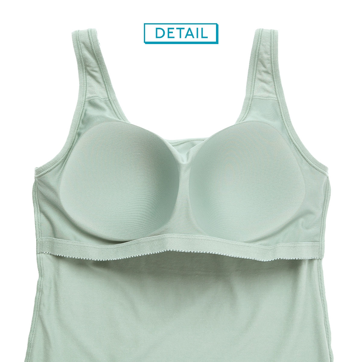 カップ付きのトップなので、重ね着の煩わしさがなく、1枚で簡単に洋服とコーディネートができます。