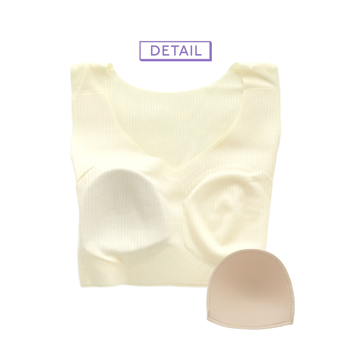 生地端が切りっぱなしなので、肌になじんでアウターにひびきにくいのも魅力。取り外し可能なパッド付きで、同シリーズのショーツとのカラーコーディネイトも楽しめます。