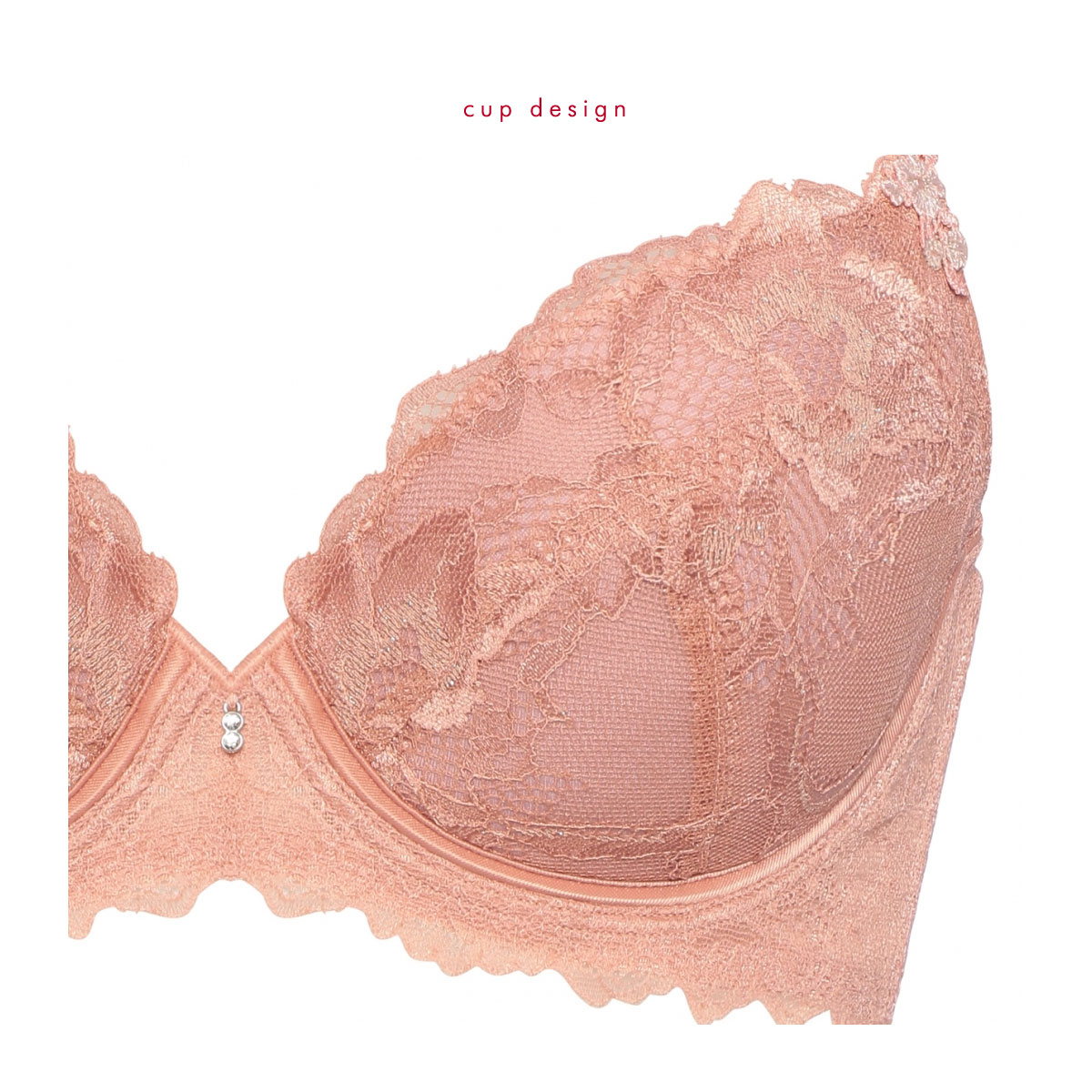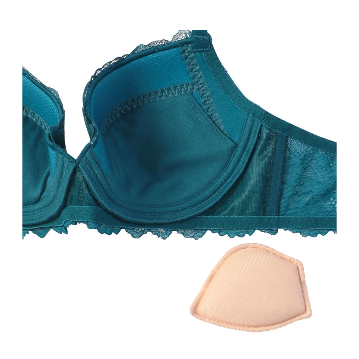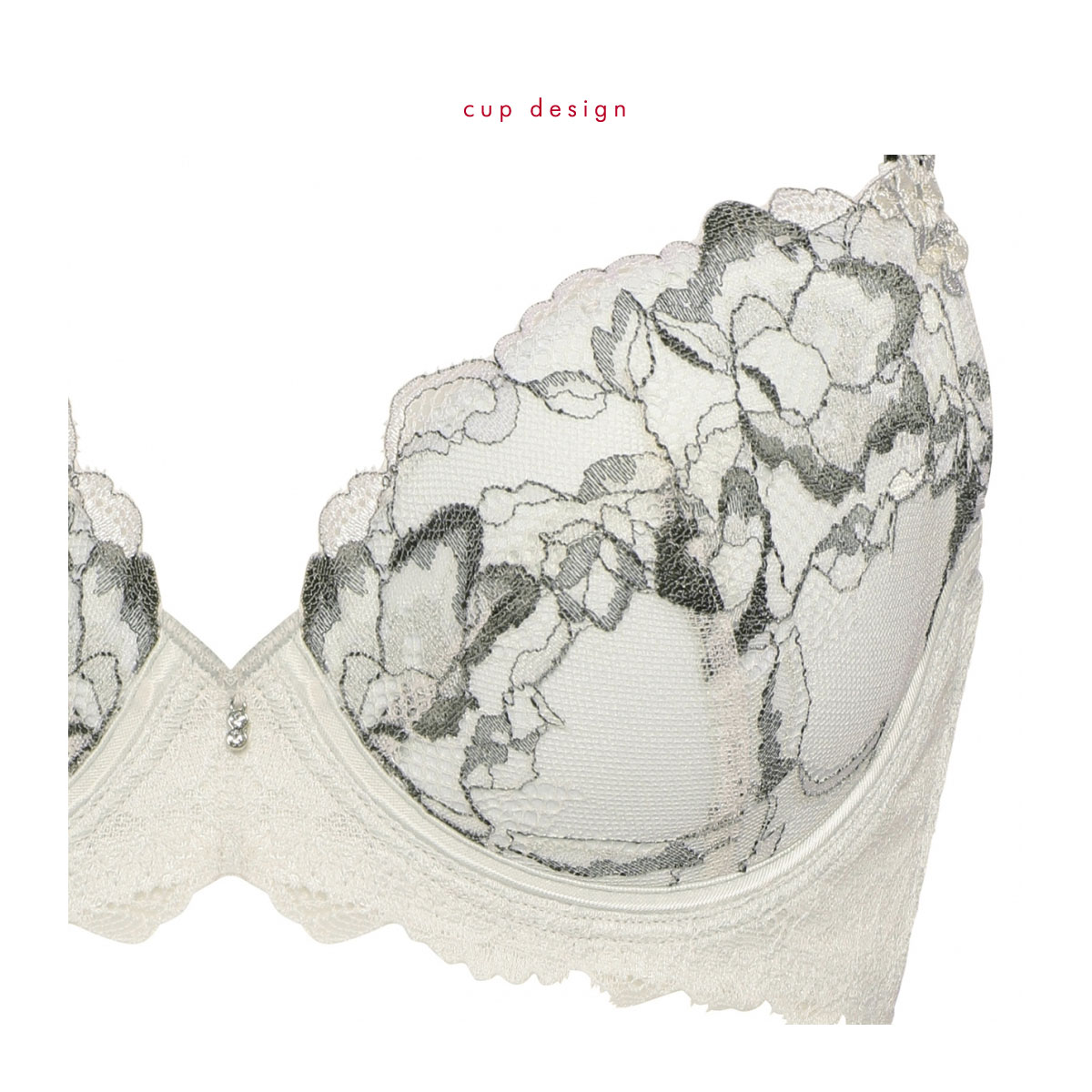 カップ脇の「サイドコンシャス」機能で、脇をすっきりさせきれいな谷間をキープ。カップには保形性・耐久性に優れた3Dファイバーフィルを使用し、ボリュームアップパッドも内蔵。