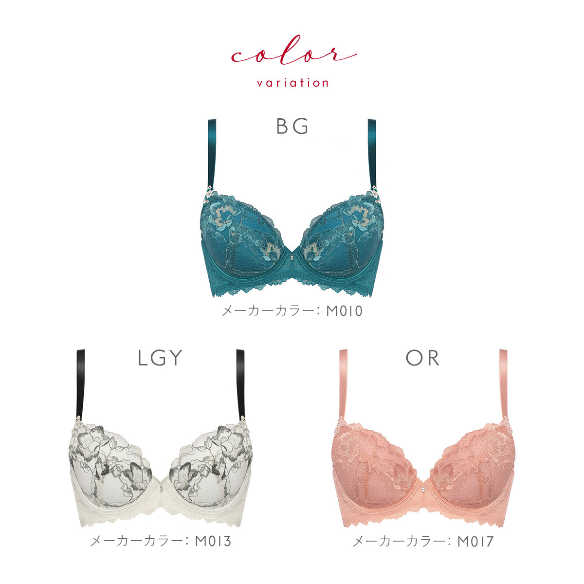 ワイヤーのくいこみを軽減する「NEWエンジェルワイヤー」採用。ストラップとめ具に三角形の特殊な形をした「デルタマジック(R)」を使用しているので、肩からずれ落ちにくくなっています。同シリーズのショーツ、キャミソールとコーディネイト可能です。