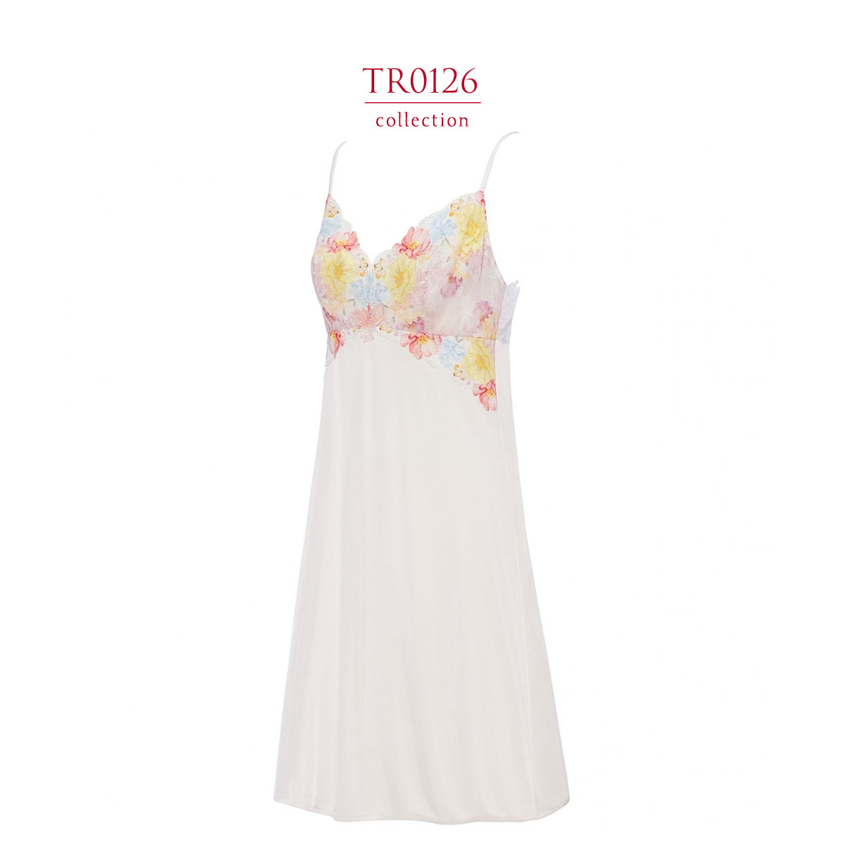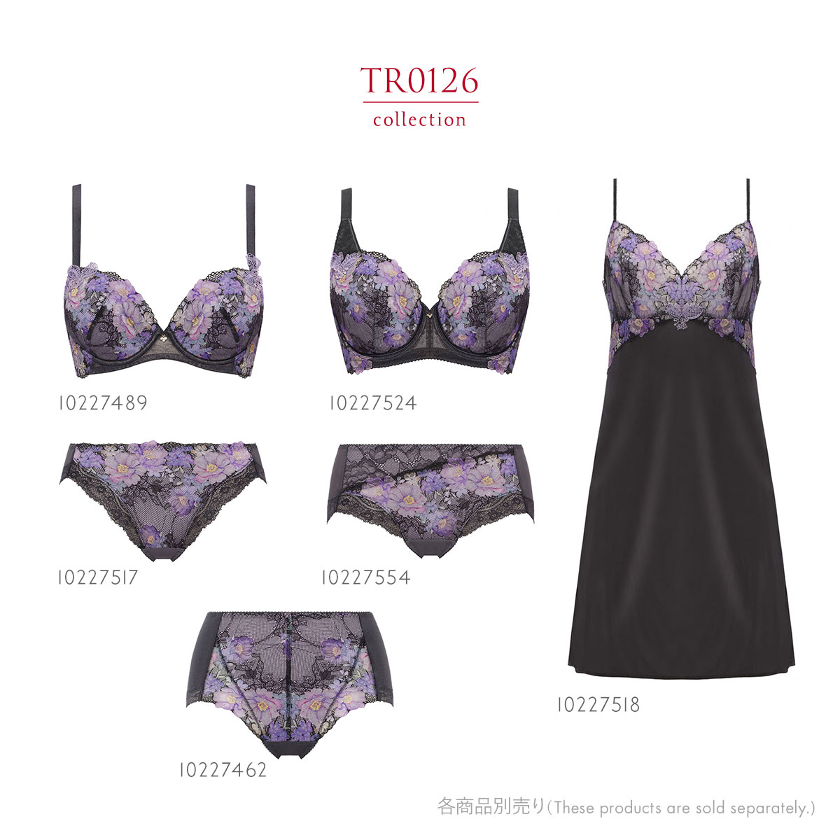 TR0126シリーズは、ガーベラやネモフィラが鮮やかに咲き誇る、トリンプ プレミアムデザイン。リボンモチーフのアップリケを添えた、特別感あふれるフェミニンなシリーズです。