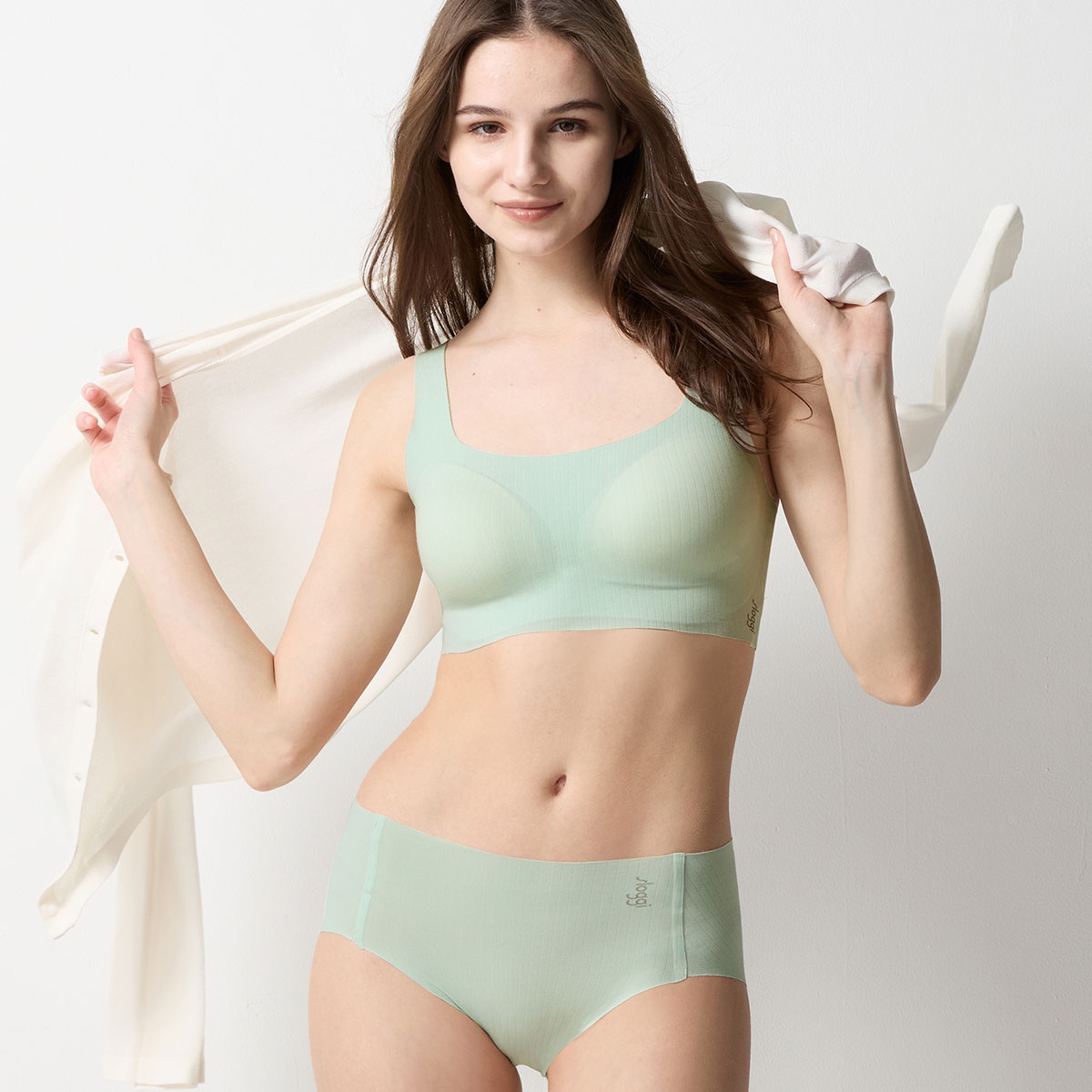 リブ編みの綿混素材は柔らかく伸縮性に優れ、体にやさしくフィット。吸水速乾機能を備えているため、汗をかいても蒸れにくく、一日中さらっと快適な着用感をキープします。スロギーオリジナルのパッドが、着用中のズレを防ぎながら、ナチュラルで美しいバストラインを整えてくれます。