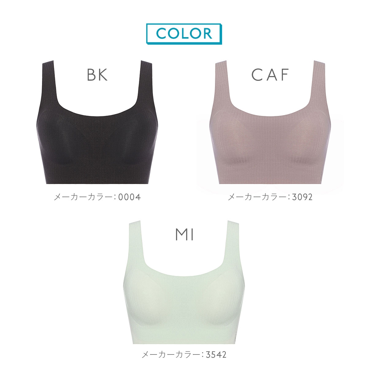 | 仕 様 | ・ハーフトップ ・ノンワイヤー ・ホックなし、かぶりタイプ ・薄型パッド取外し:可能 ・サイドボーン:なし ・吸水速乾