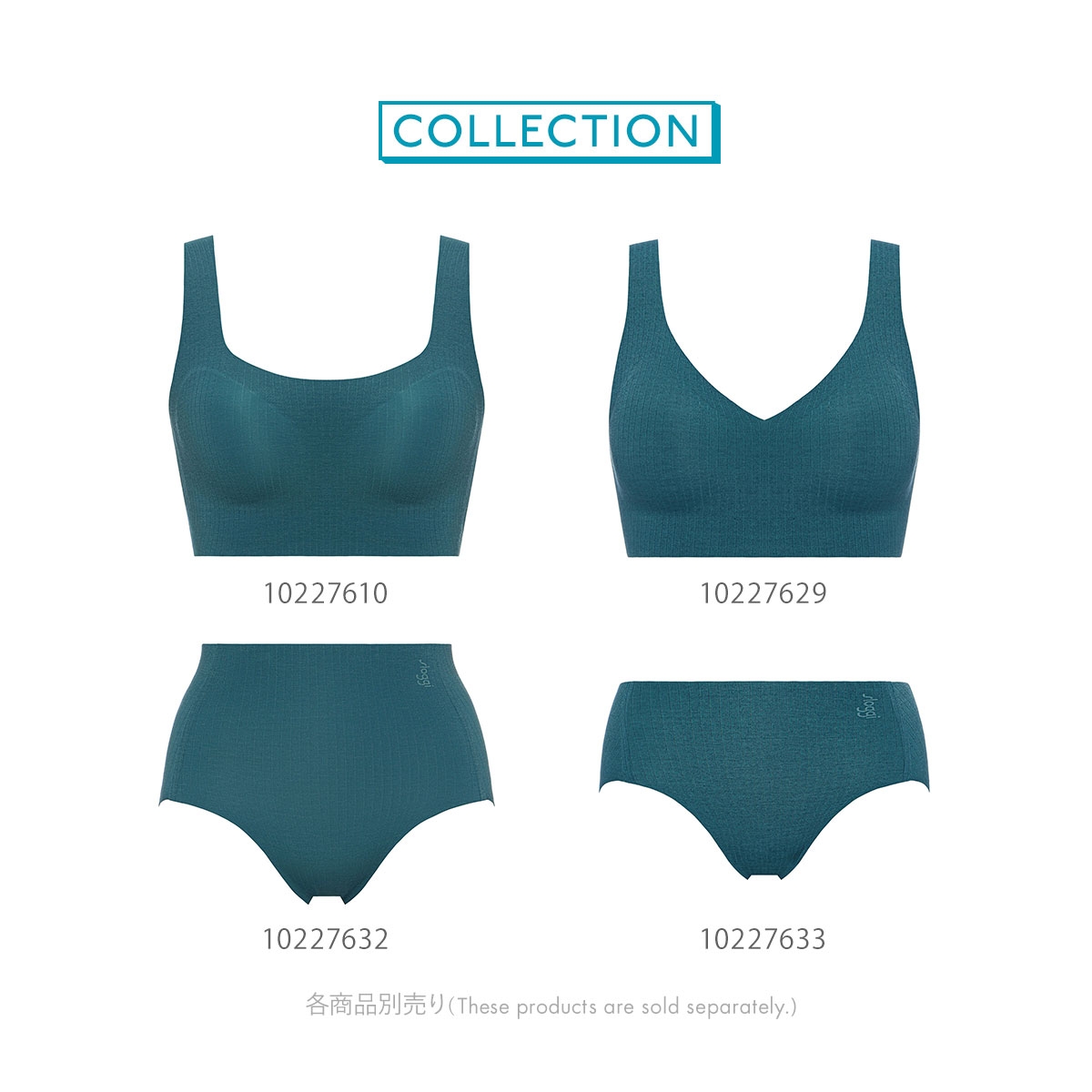接着技術を駆使した縫い目ゼロ(無縫製)の仕様により、肌に溶け込むようななめらかな肌あたりを実現。インナーラベルもプリントタイプにすることで、縫い目によるチクチク感をなくし、どこまでもやさしい履き心地にこだわりました。生地端は切りっぱなしのフラット仕上げで、タイトなボトムスを履いても下着のラインが驚くほどひびきにくいのが特長です。