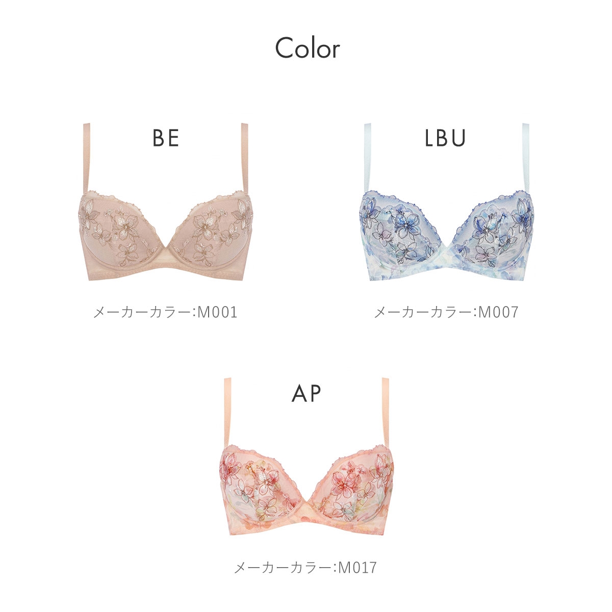 カラーBE-ベージュ、LBU-薄ブルー、AP-アプリコット