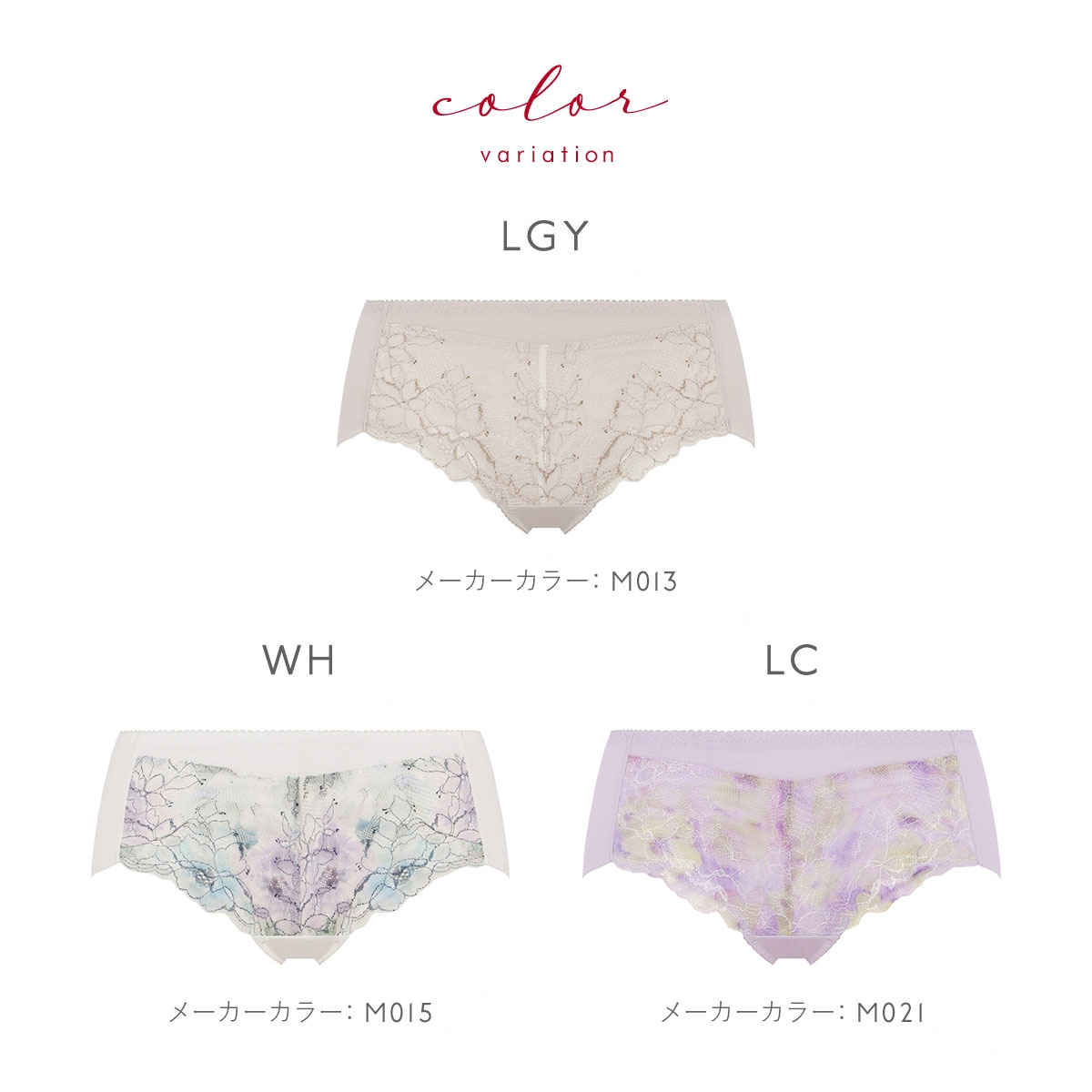 風になびくペラルゴニウムの花をイメージした、透け感のある編みレースが涼しげな「ブラCOOL」のヒップハンガーショーツです。