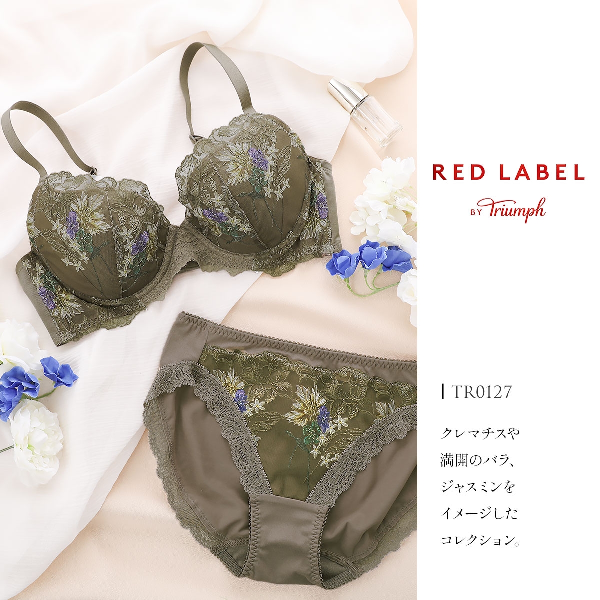 クレマチスや満開のバラ、ジャスミンをイメージした繊細なレースに、きらめくラメ糸とみずみずしいプリントを施した、トリンプ プレミアムラインのショーツです。