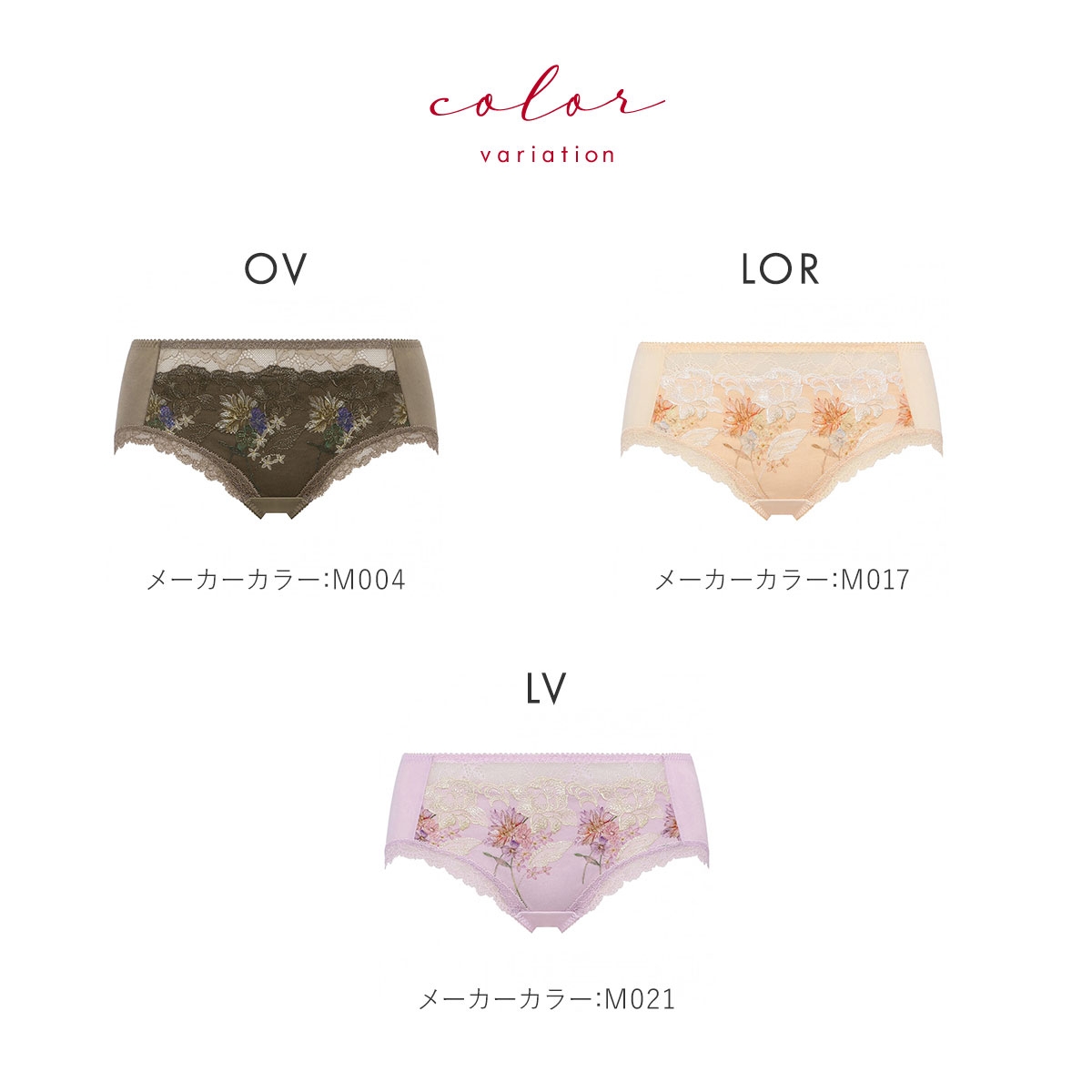 カラーOV-オリーブ、LOR-薄オレンジ、LV-ラベンダー