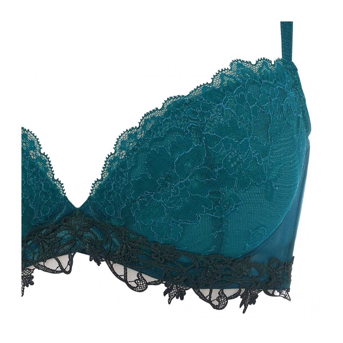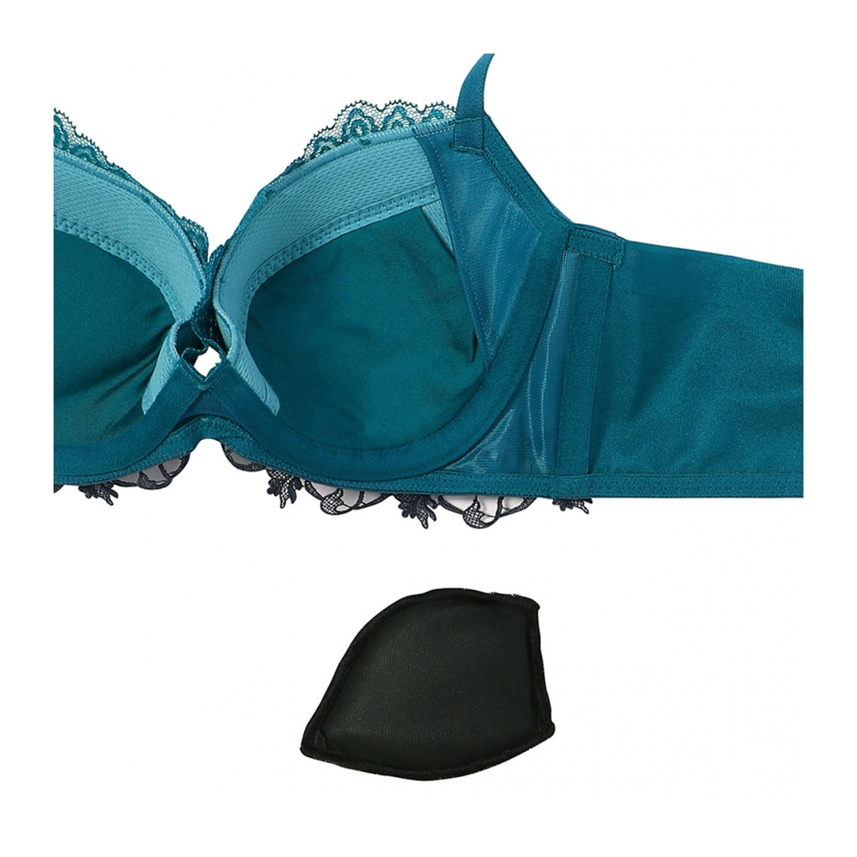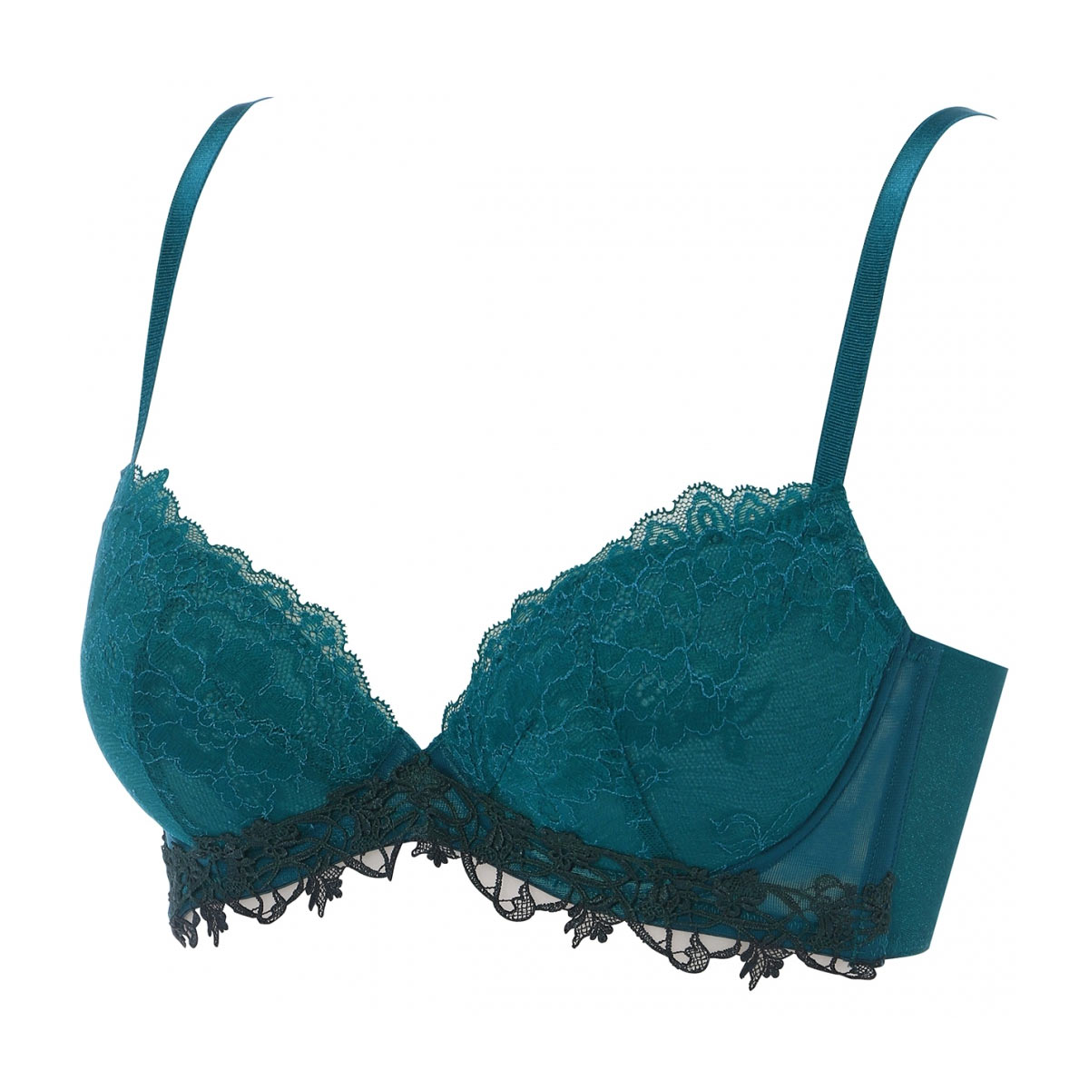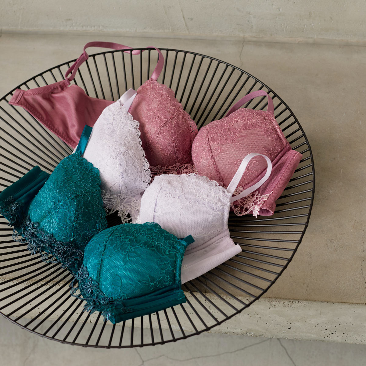 デザインは、妖精の衣装のような軽やかな編みレースとケミカルレースを使用したロマンチックな仕上がり。ストラップずれを防ぐ「デルタマジック」機能付きです。