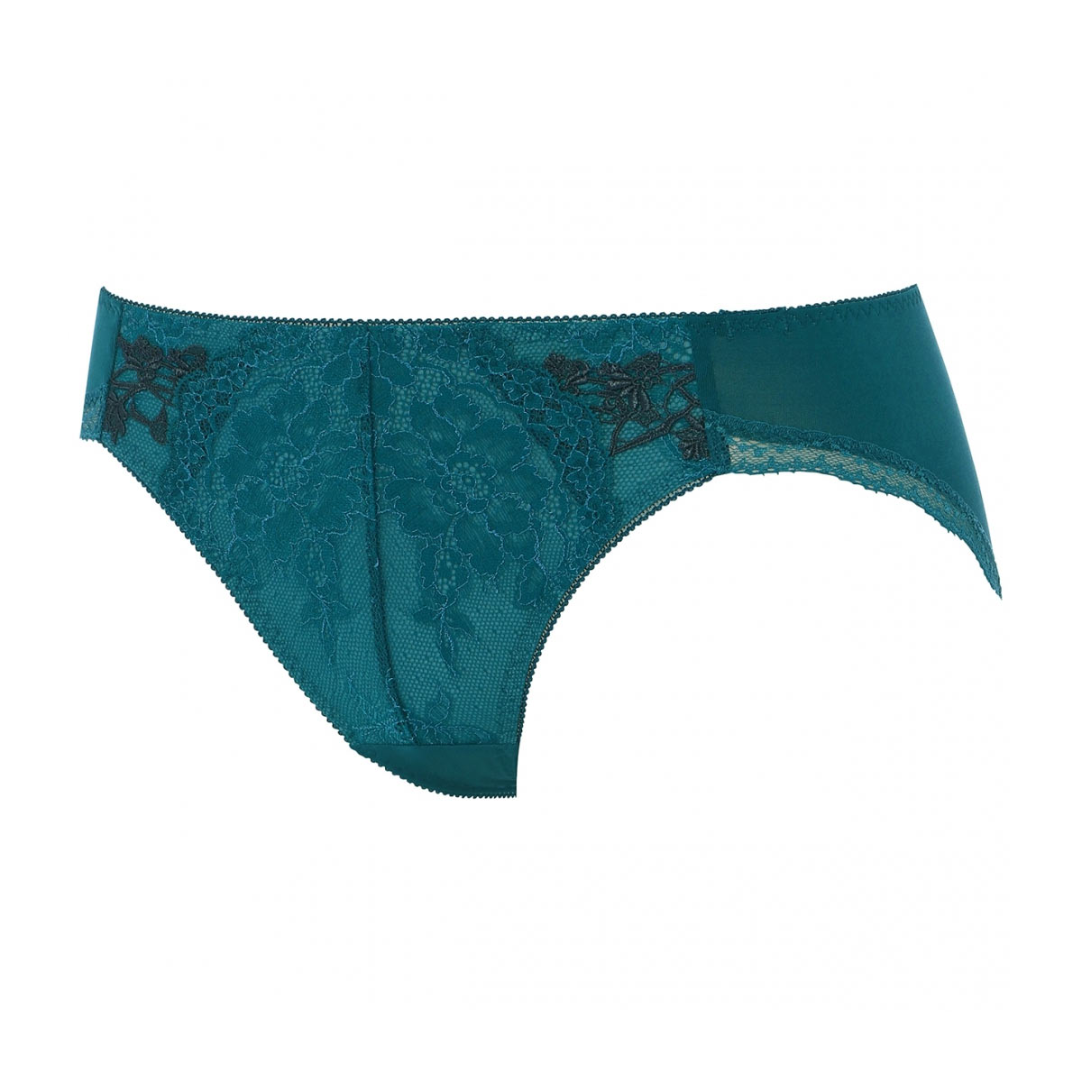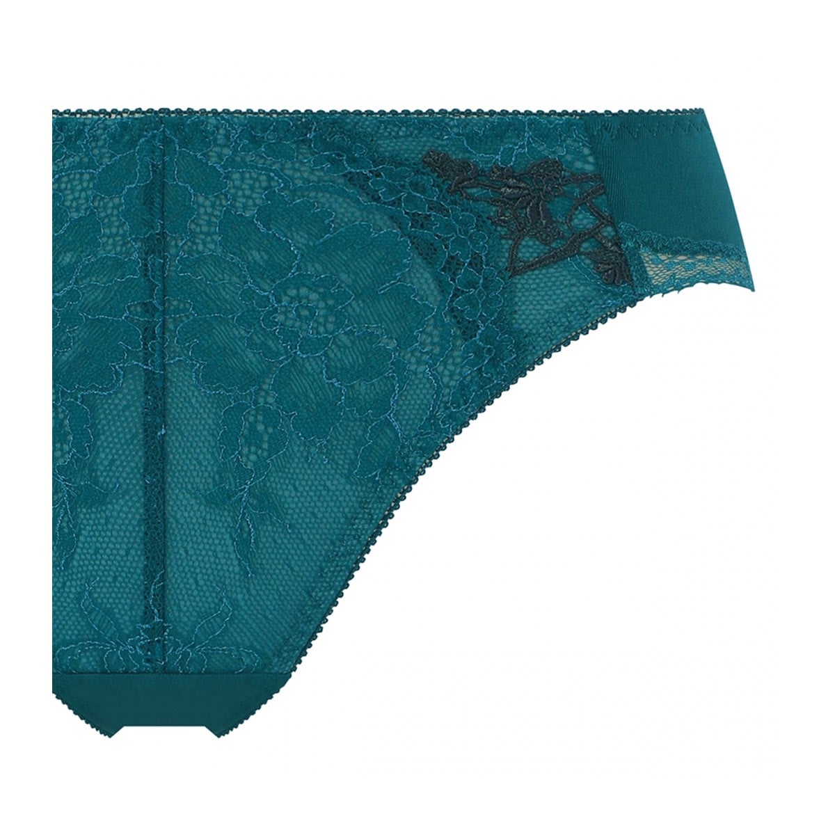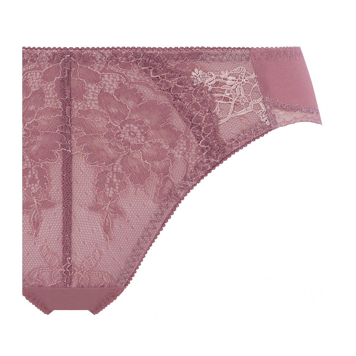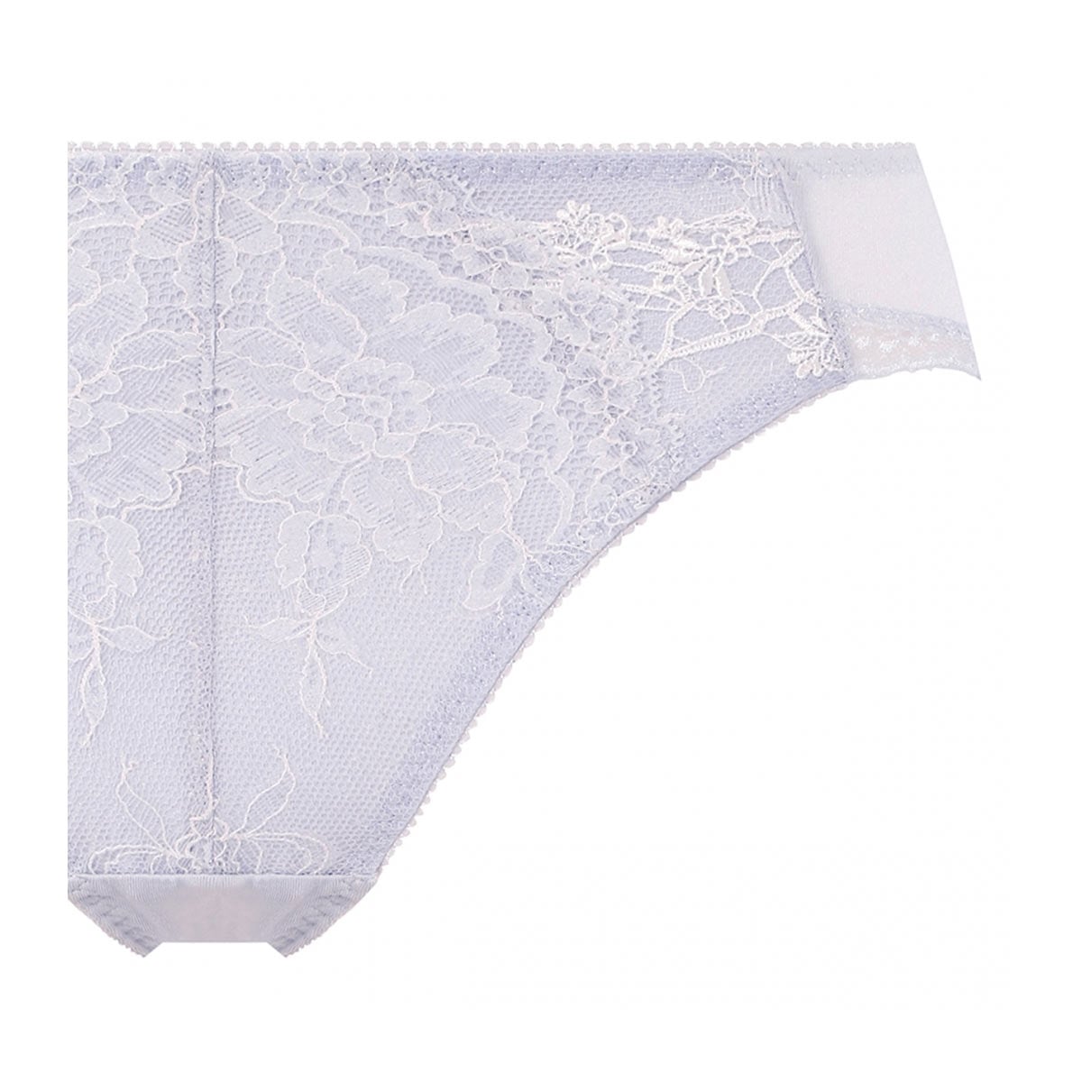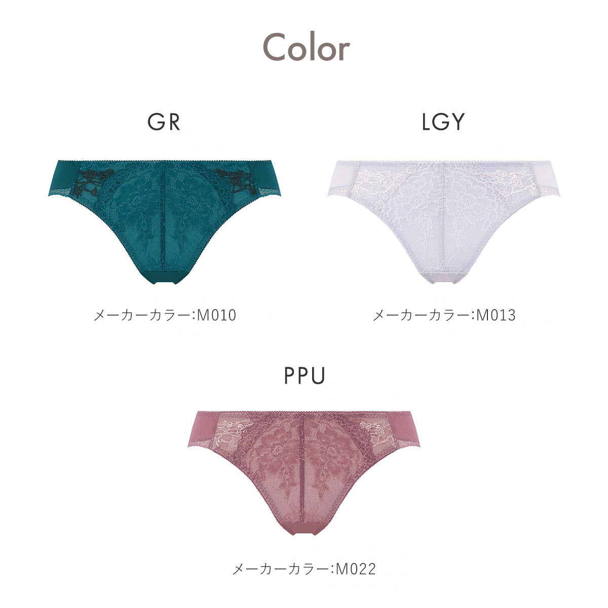 フロント脚口はハイレグカットで鼠径部の圧迫が少なく、脚のラインがきれいに見えるハイレグショーツ。バック脚口はレース仕様で、アウターにひびきにくく、くいこみにくいラクなはきごこちです。