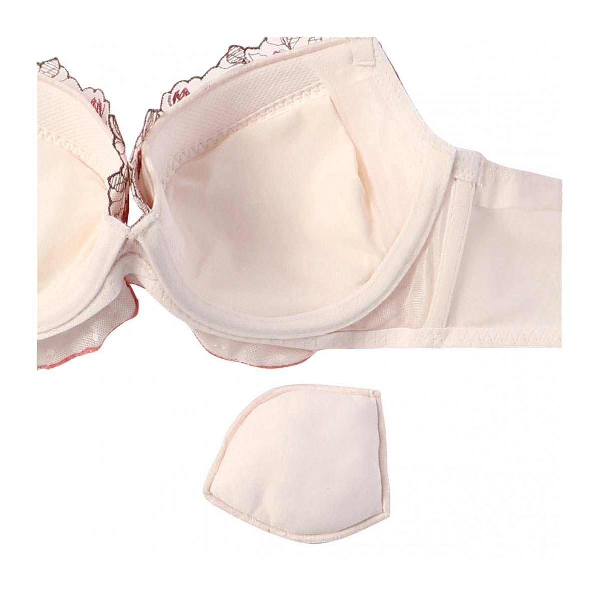 ワイヤーには、先端を外側に反らせた「NEWエンジェルワイヤー」を採用。くいこみにくく、ワイヤーのあたりが気になる方も安心の痛くなりにくい着け心地です。型崩れしにくい「3Dファイバーフィル」のカップと取り外し可能なパッドが、ふっくらとしたボリュームを優しく作ります。