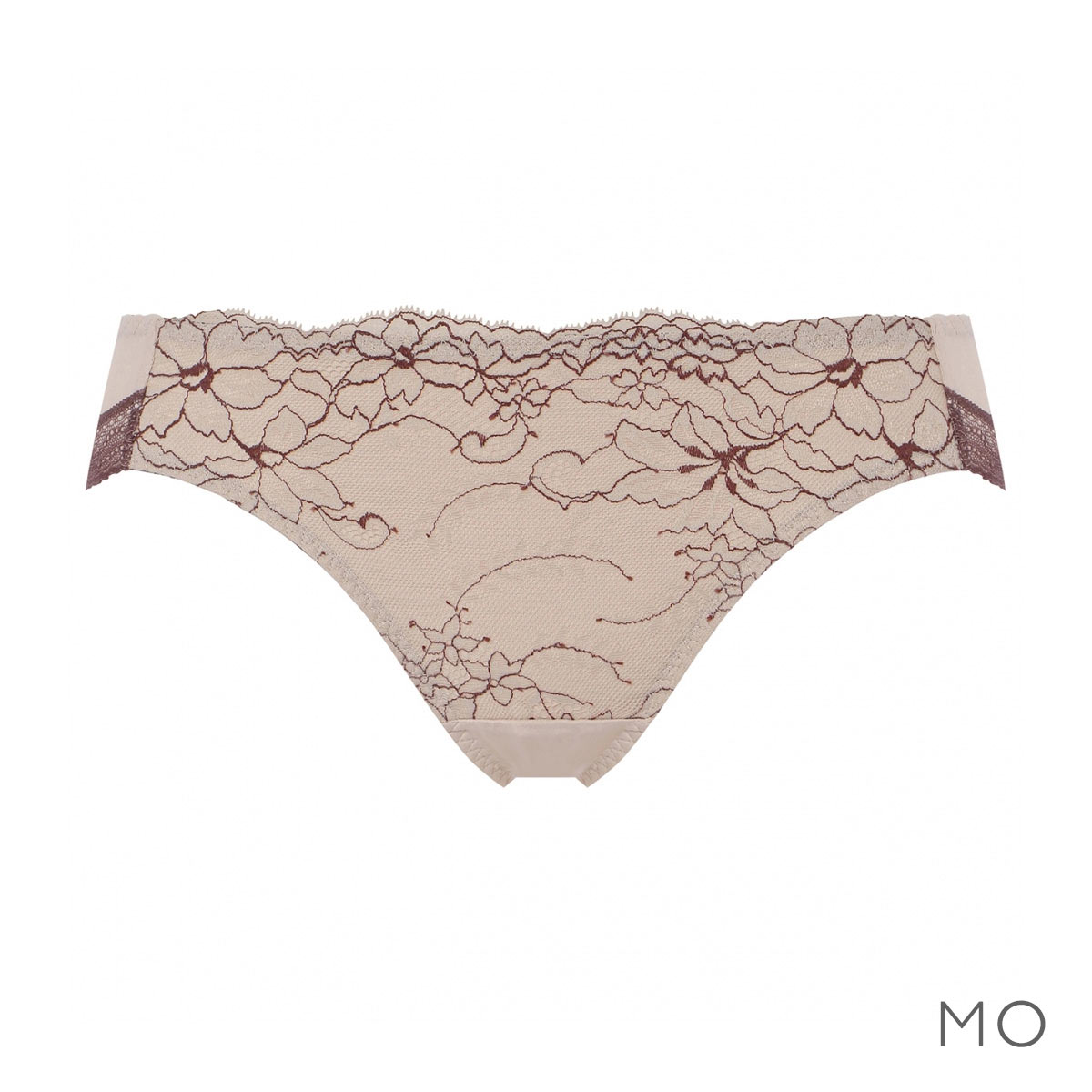 繊細なラインアートが美しい花柄の編みレースをフロントにあしらった、上品で洗練されたデザインのショーツ。シックなカラーリングと繊細なレースのディテールが、大人の美しさを引き立てます。