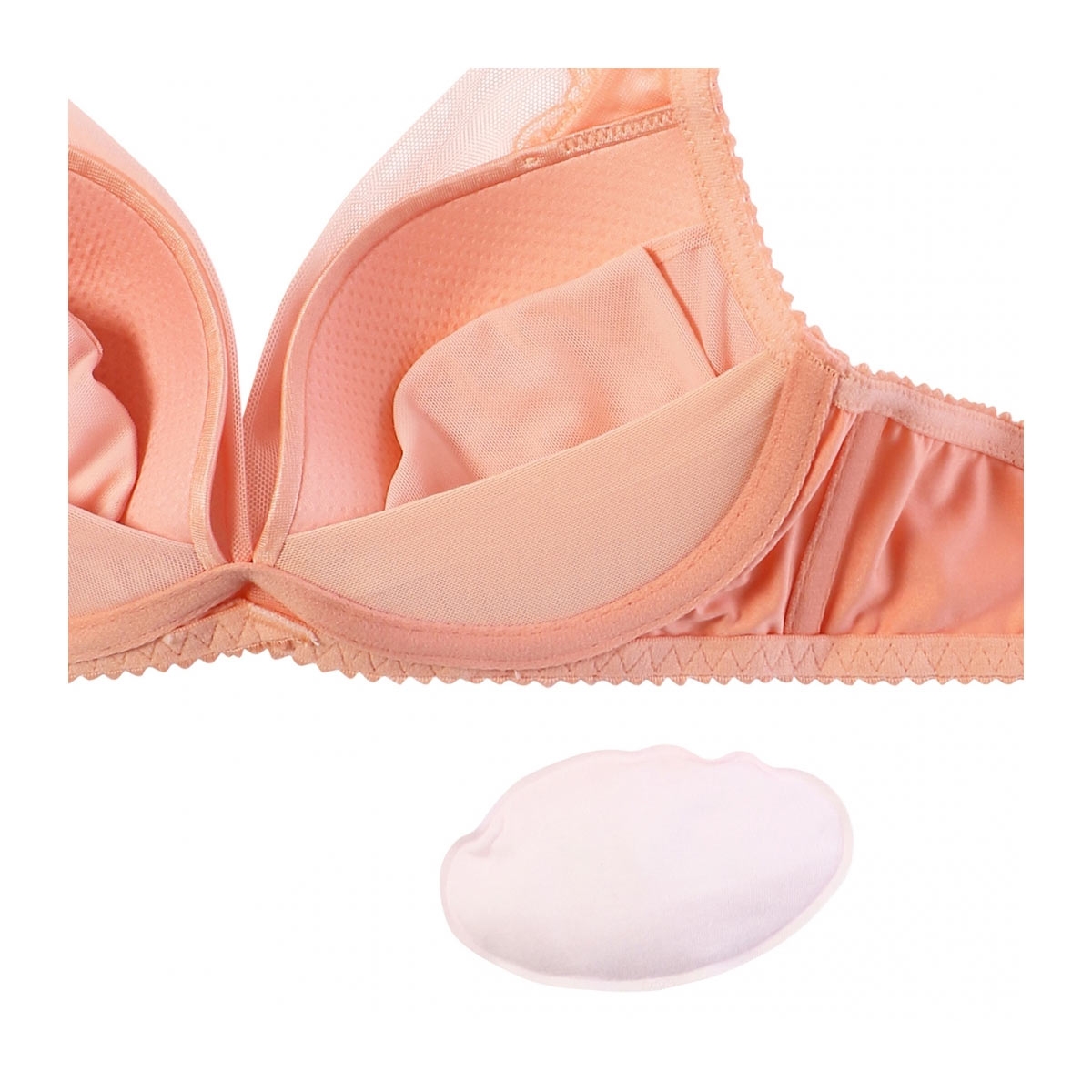 最大の特長は、暑い季節もさらりと快適に過ごせる抜群の通気性。気泡の大きなポリウレタンとメッシュを重ねた特製カップに加え、通気性に優れた「エアリーシュガーパッド」を採用しました。ノンワイヤーの解放感はそのままに、ムレを逃がしながら、ふっくらとした盛り胸を叶えます。